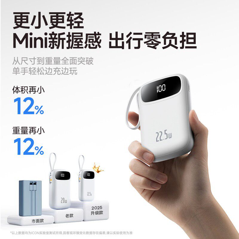 20000万毫安大容量自带线快充小巧便携移动电源 新国标3C认证