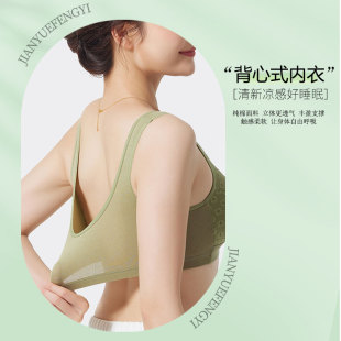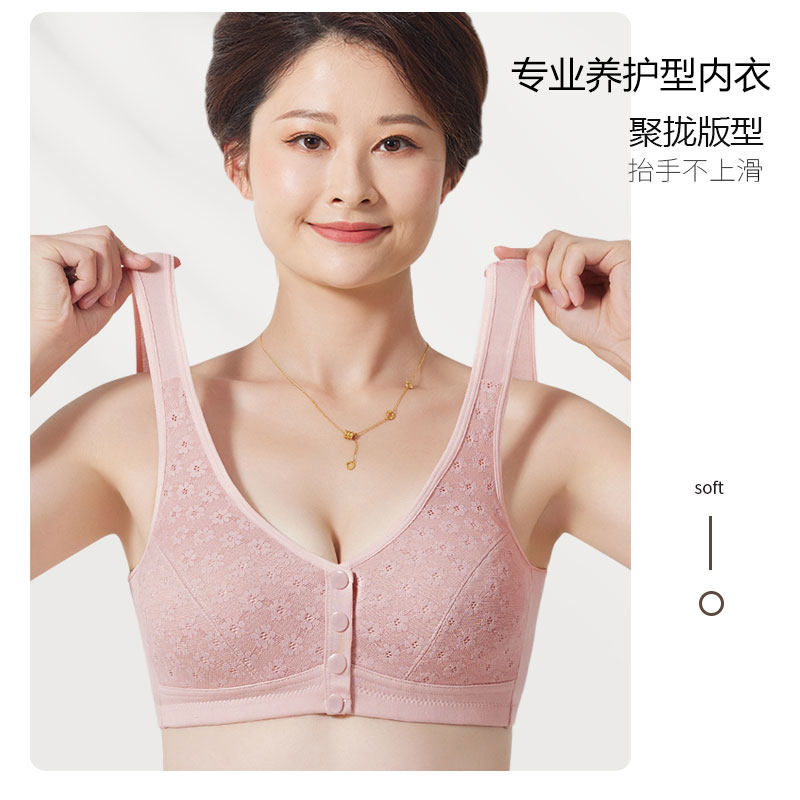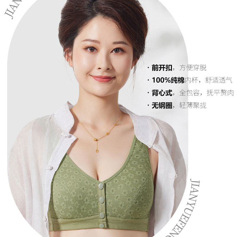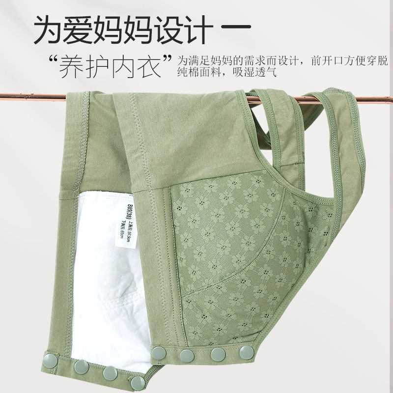 妈妈内衣中老年人纯棉前扣女美背心式 无痕文胸罩薄 无钢圈妇女大码