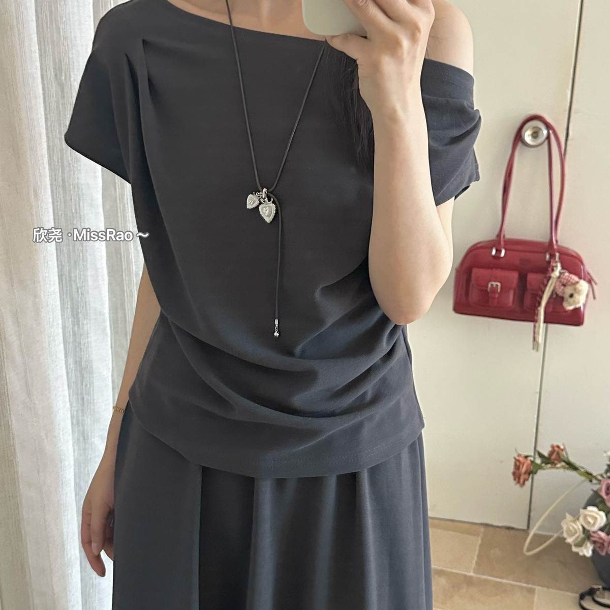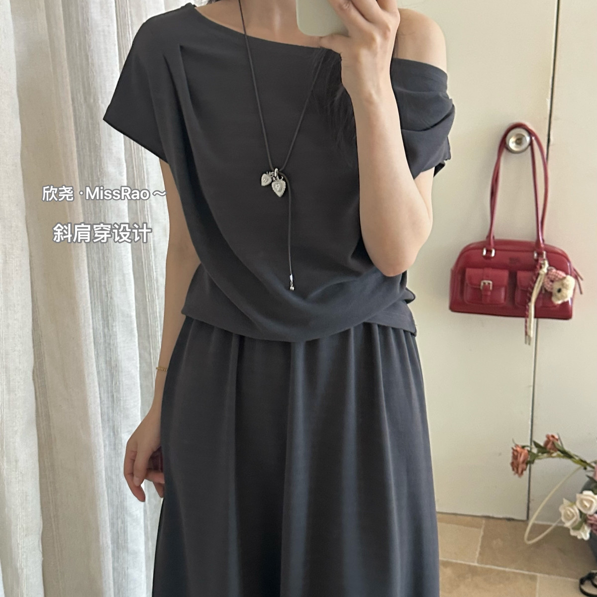 两件套 套装 62211 半身裙超级推荐 甜甜轻奢针织斜肩小衫