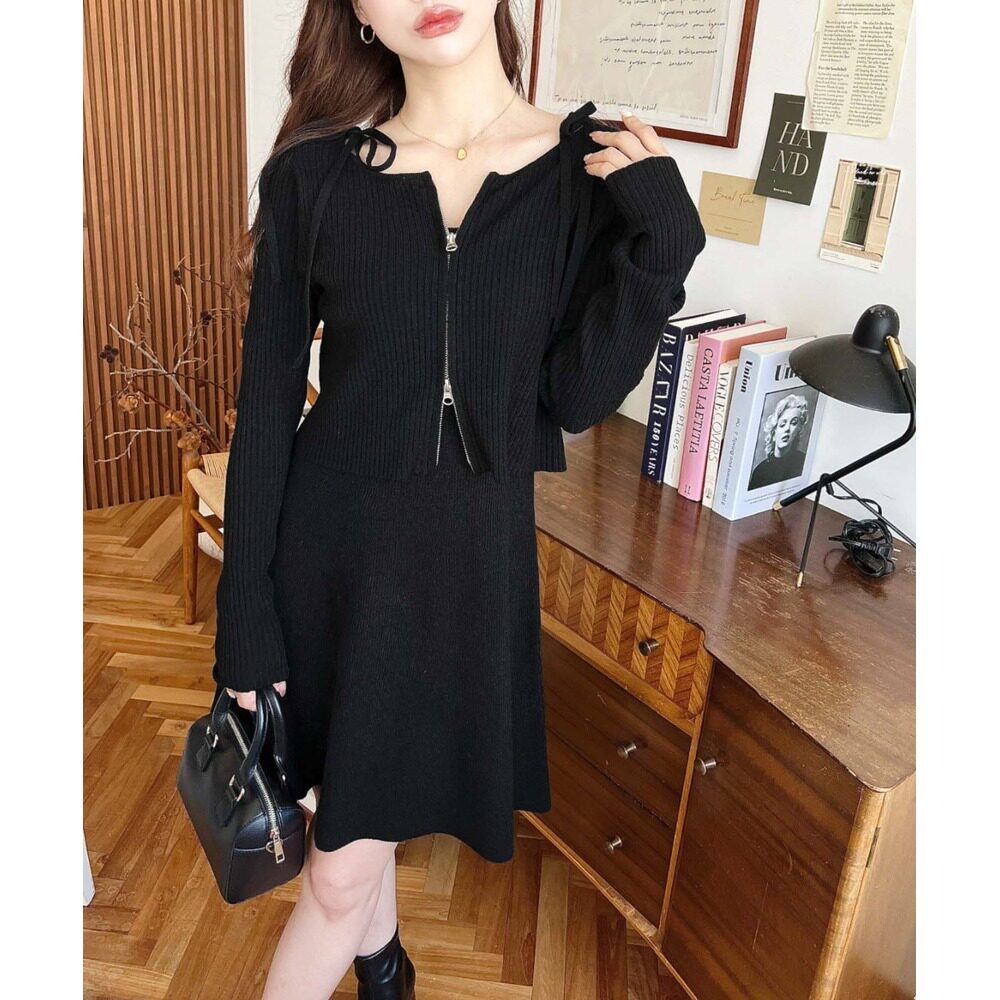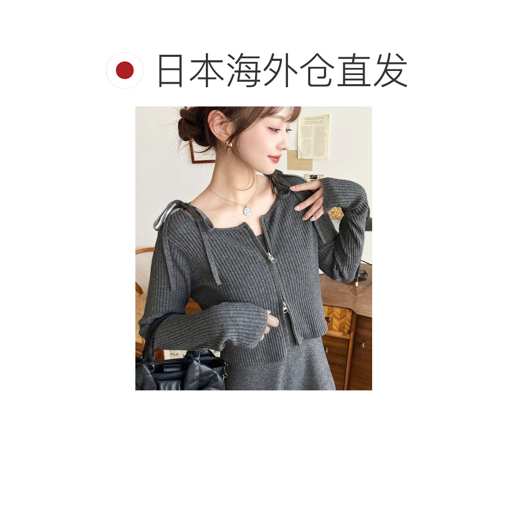 短款 日本直邮moment 系带吊带裙 两件套针织连衣裙 拉链开 女装