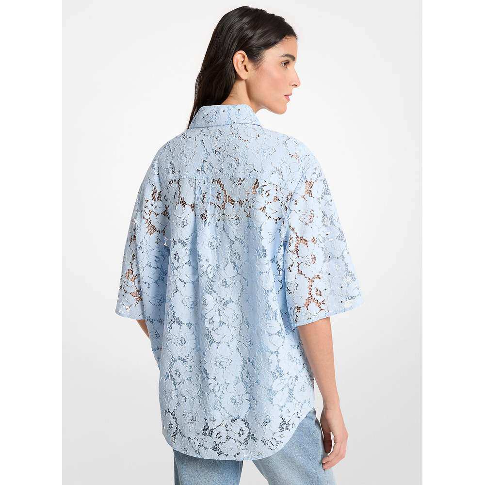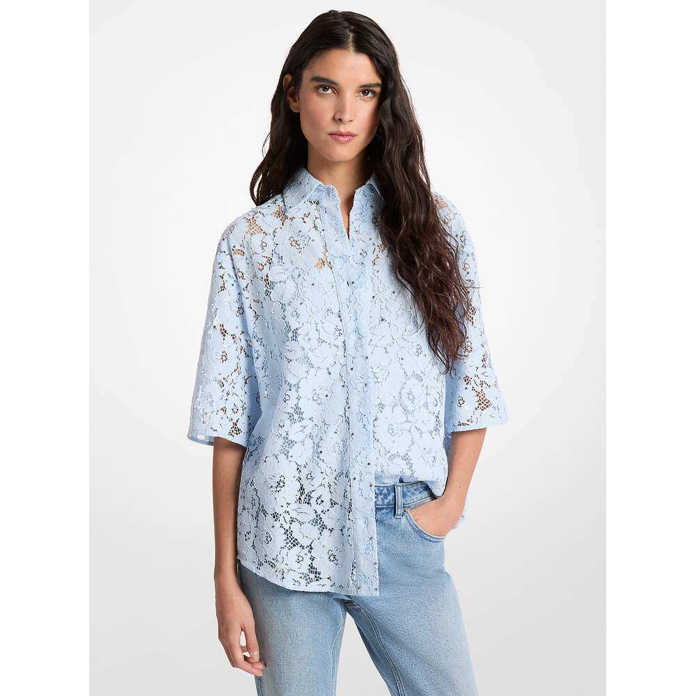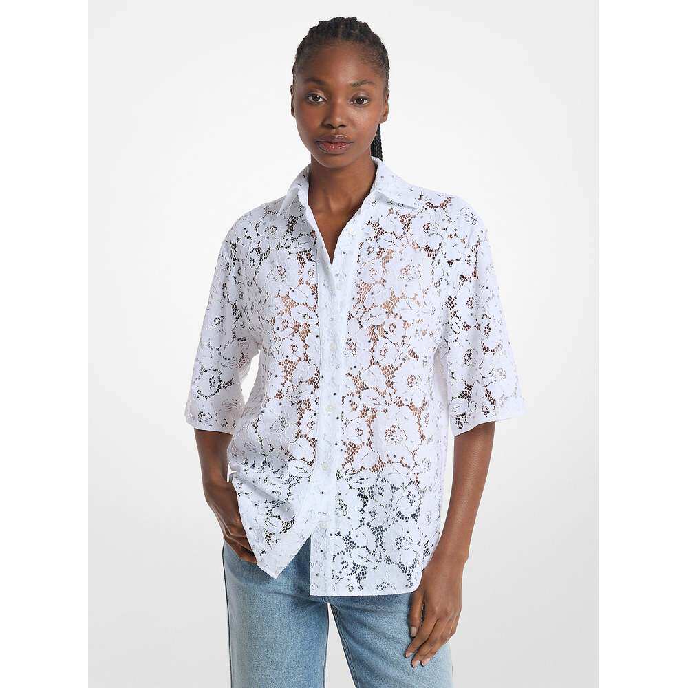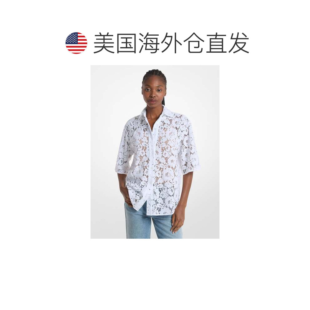 美国奥莱直发 白色 自营michael kors铆钉绳线花卉蕾丝衬衫