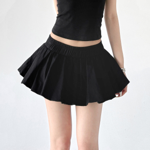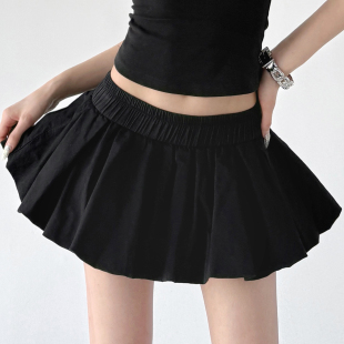 巨好看高腰花苞短裙女2026夏装 抽绳松紧腰百褶裙休闲半身裙子 新款
