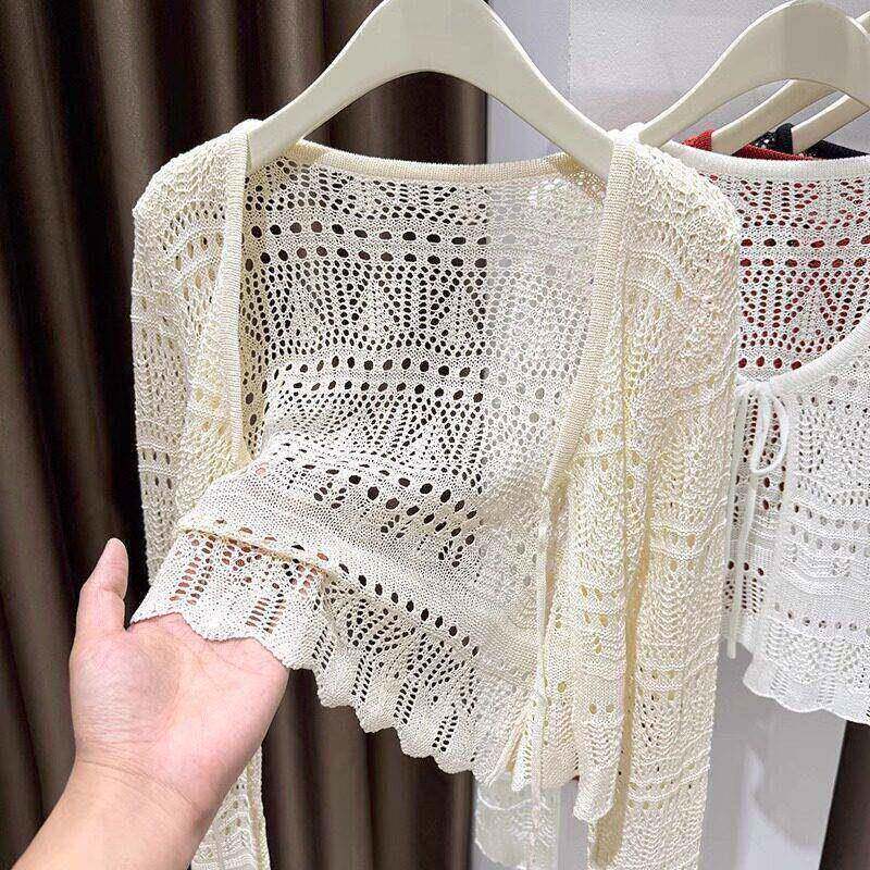 波浪边披肩薄罩衫 高级感女装 外搭短款 夏配洋装 0325z1 红色针织开衫