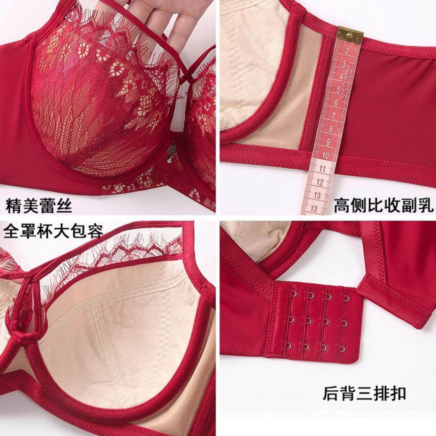 新品 蕾丝内衣女大胸显小软钢圈调整型文胸收副乳防下垂外扩胸罩薄