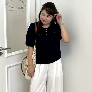 女装 针织衫 休闲上衣女polo衫 胖mm宽松短袖 2026春款 乃粒23738大码