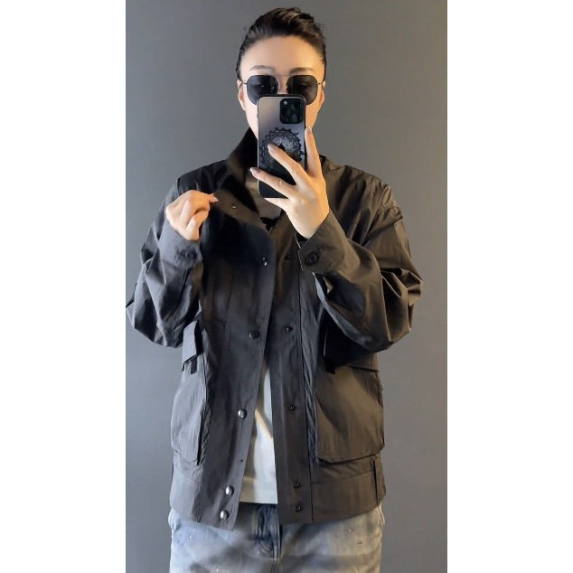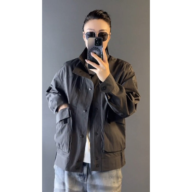 春 风立领夹克中性帅气冲锋衣外套男女情侣款 日系复古潮流时尚 工装