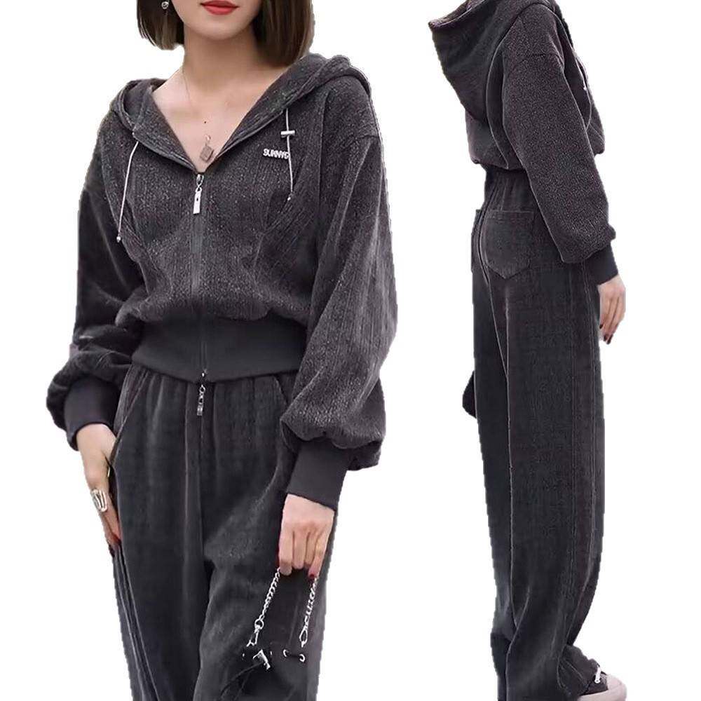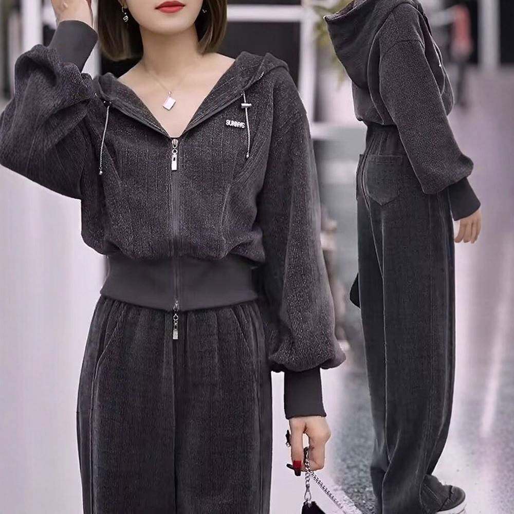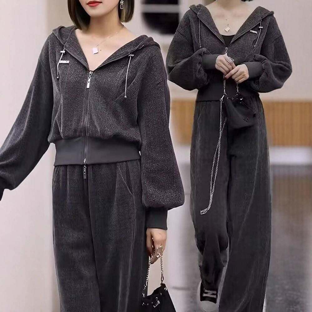 洋气显瘦减龄连帽卫衣阔腿裤 时尚 2025新款 女秋季 两件套潮 休闲套装