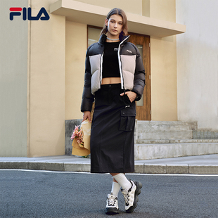 FILA斐乐羽绒服女2025冬新款 面包服美拉德风休闲保暖运动外套 短款