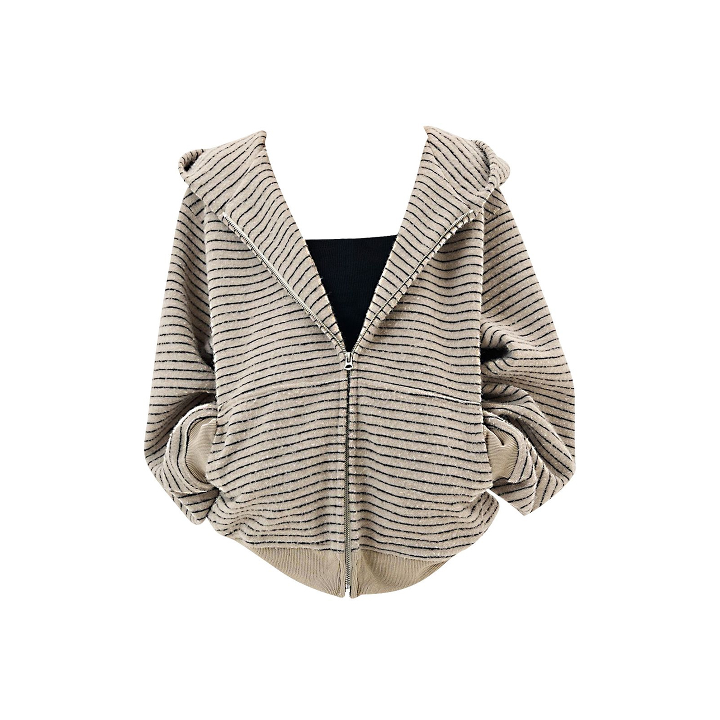 美式 百搭上衣 复古韩系连帽卫衣外套女秋冬慵懒风宽松条纹撞色开衫