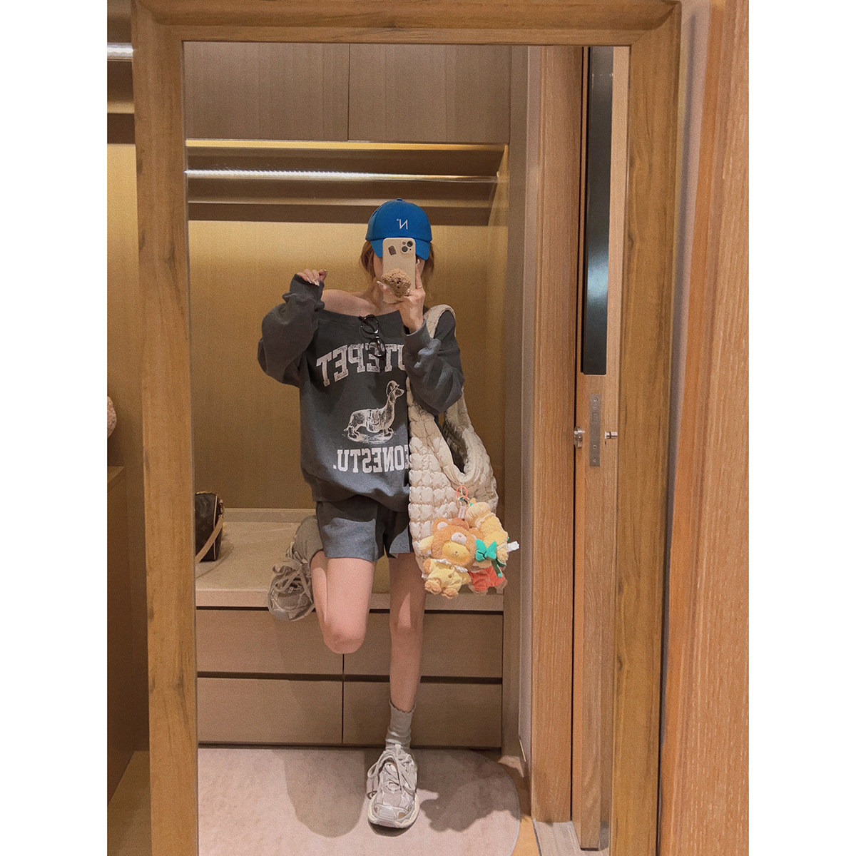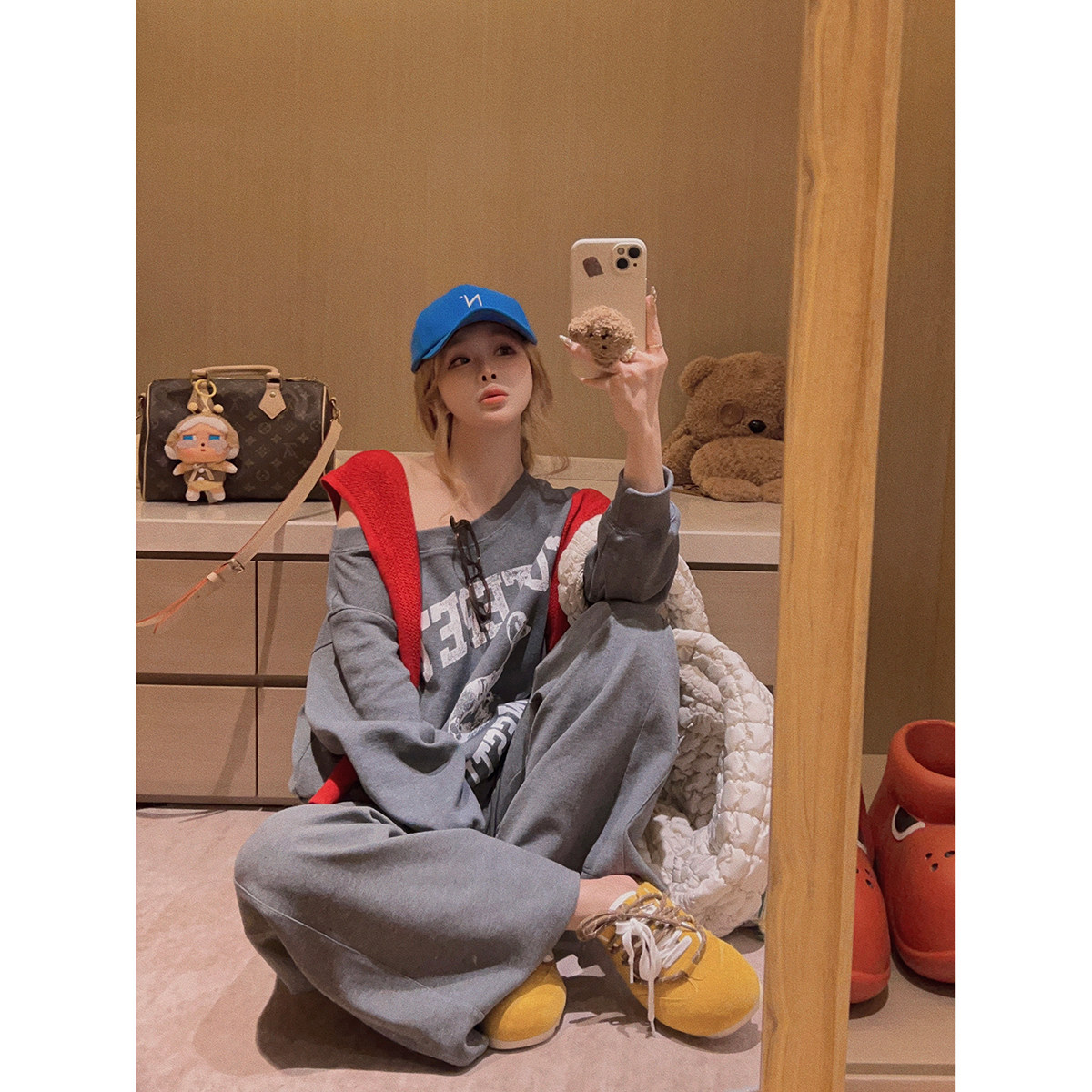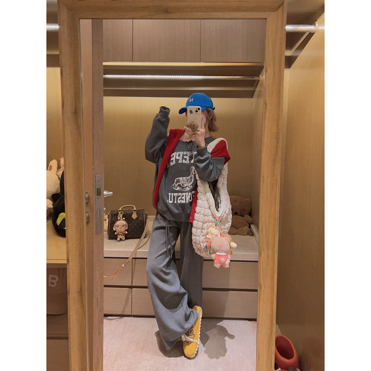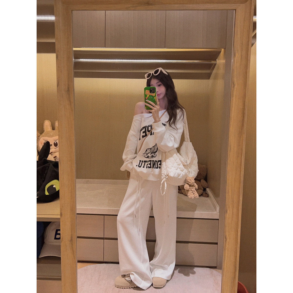 女秋韩系宽松显瘦设计感时髦上衣 套装 Yukiss 慵懒风白色卫衣卫裤