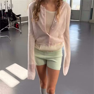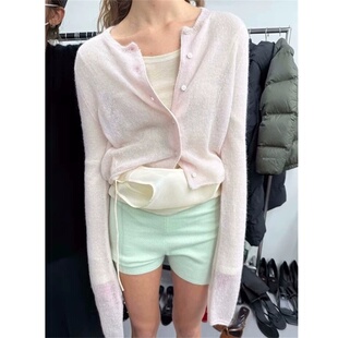 针织开衫 Find春秋新款 少女风雾感淡粉色加长袖 女装 女 品质单时尚