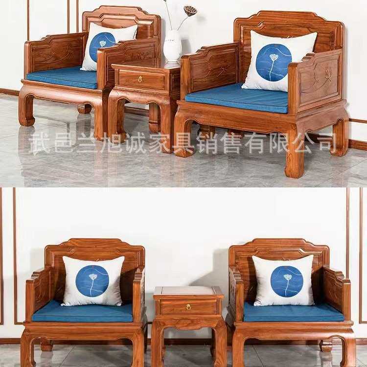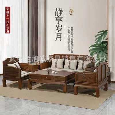 新中式 客厅家具沙发 实木沙发组合简约禅意老榆木明清古典榫卯中式