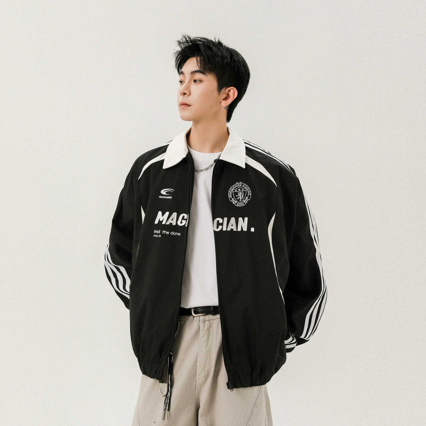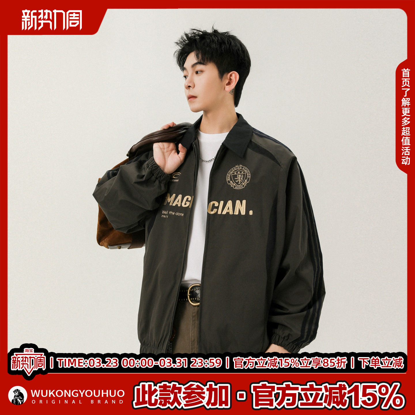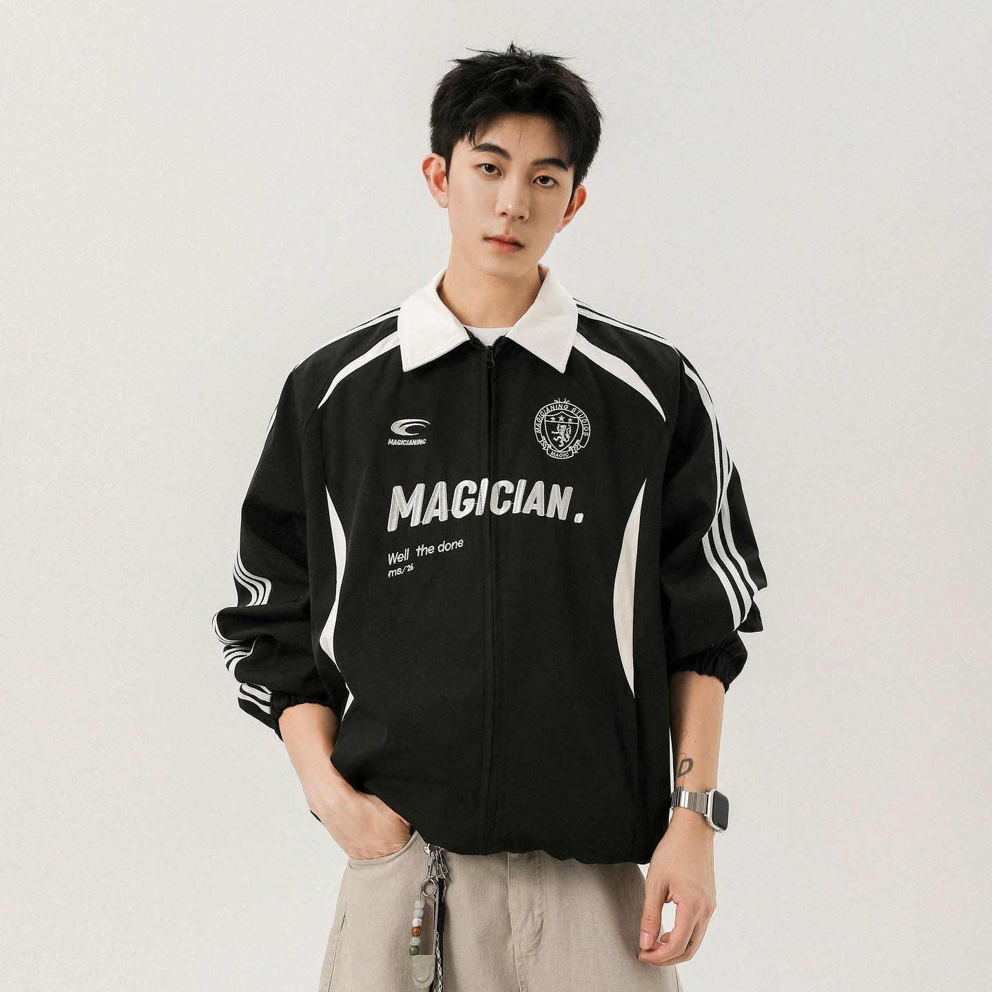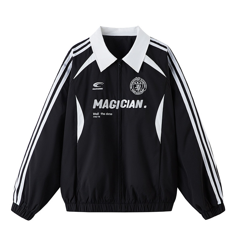 悟空有货美式 街头刺绣赛车风立领夹克男潮牌宽松休闲运动条纹外套