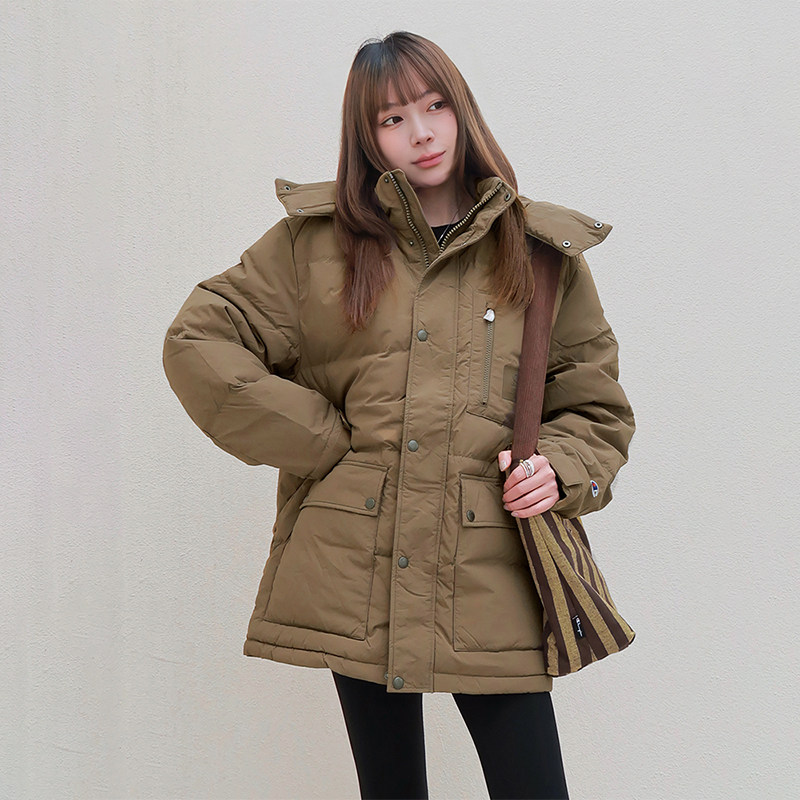 新款 羽绒服男2025冬季 Champion冠军情侣工装 鸭绒中长派克风 三防