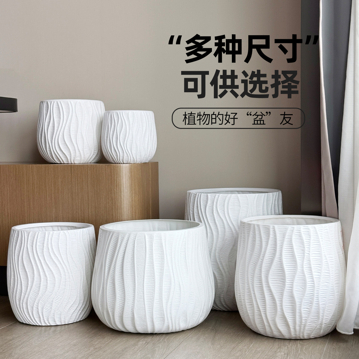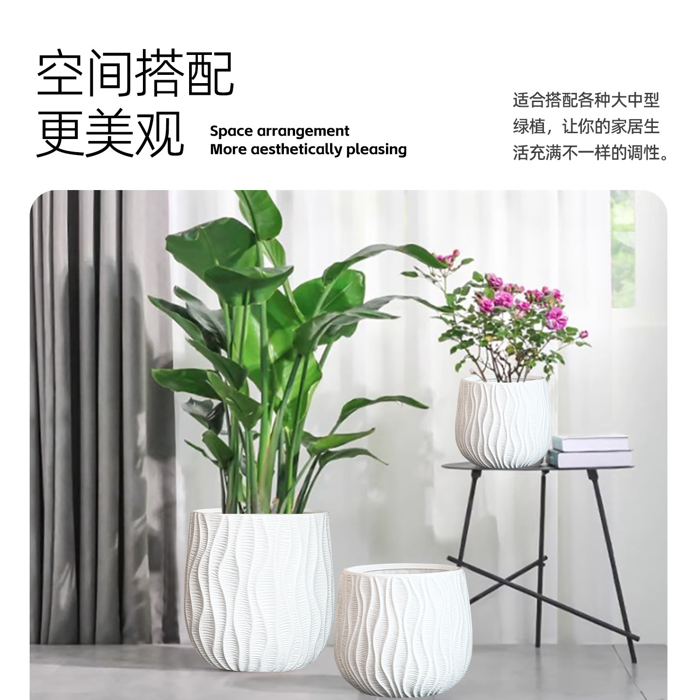 陶瓷花盆大号特大号带托盘多肉花盆欧式 简约白色绿萝客厅阳台通用