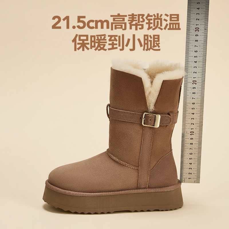 加绒保暖增高靴子中筒休闲靴女鞋 热风厚底雪地靴女2025年冬季 新款