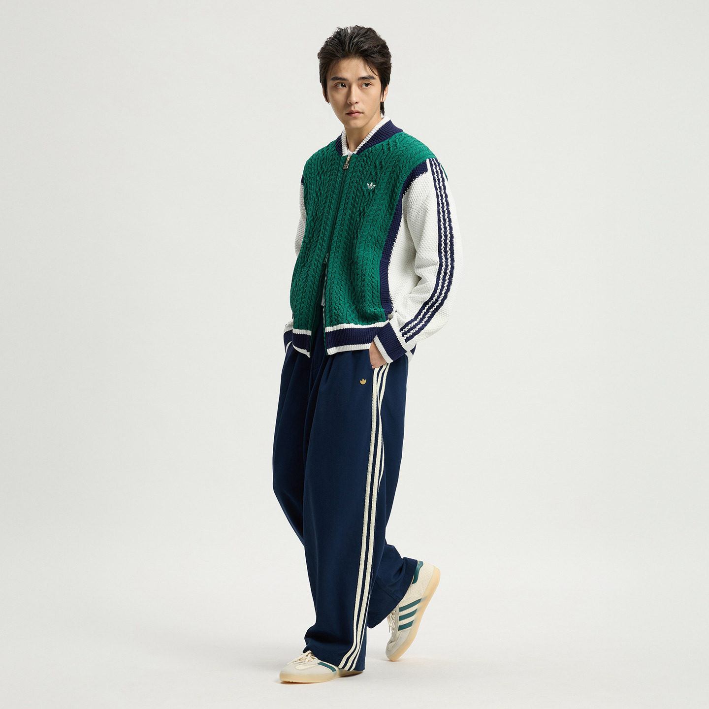 复古棒球风宽松撞色运动针织衫 adidas阿迪达斯官方三叶草 男装