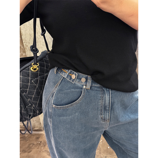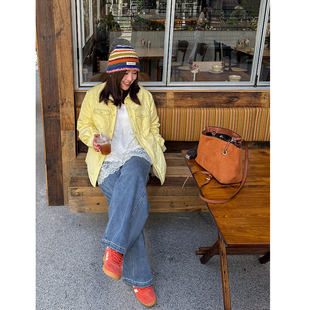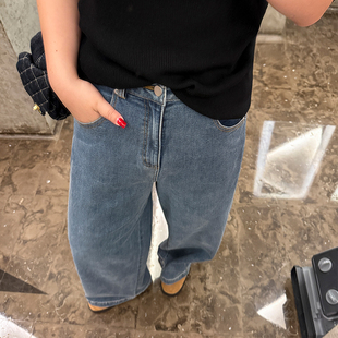 宽松高腰长裤 女装 子200斤 木子理想大码 胖mm秋冬显瘦直筒牛仔裤