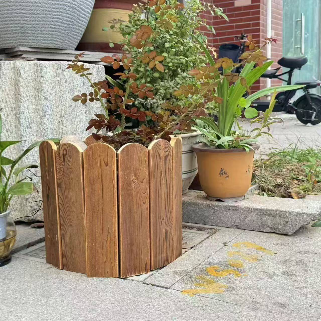 碳化木栅栏庭院围栏户外花园阳台木栅栏定制碳化木围栏花池挡土板