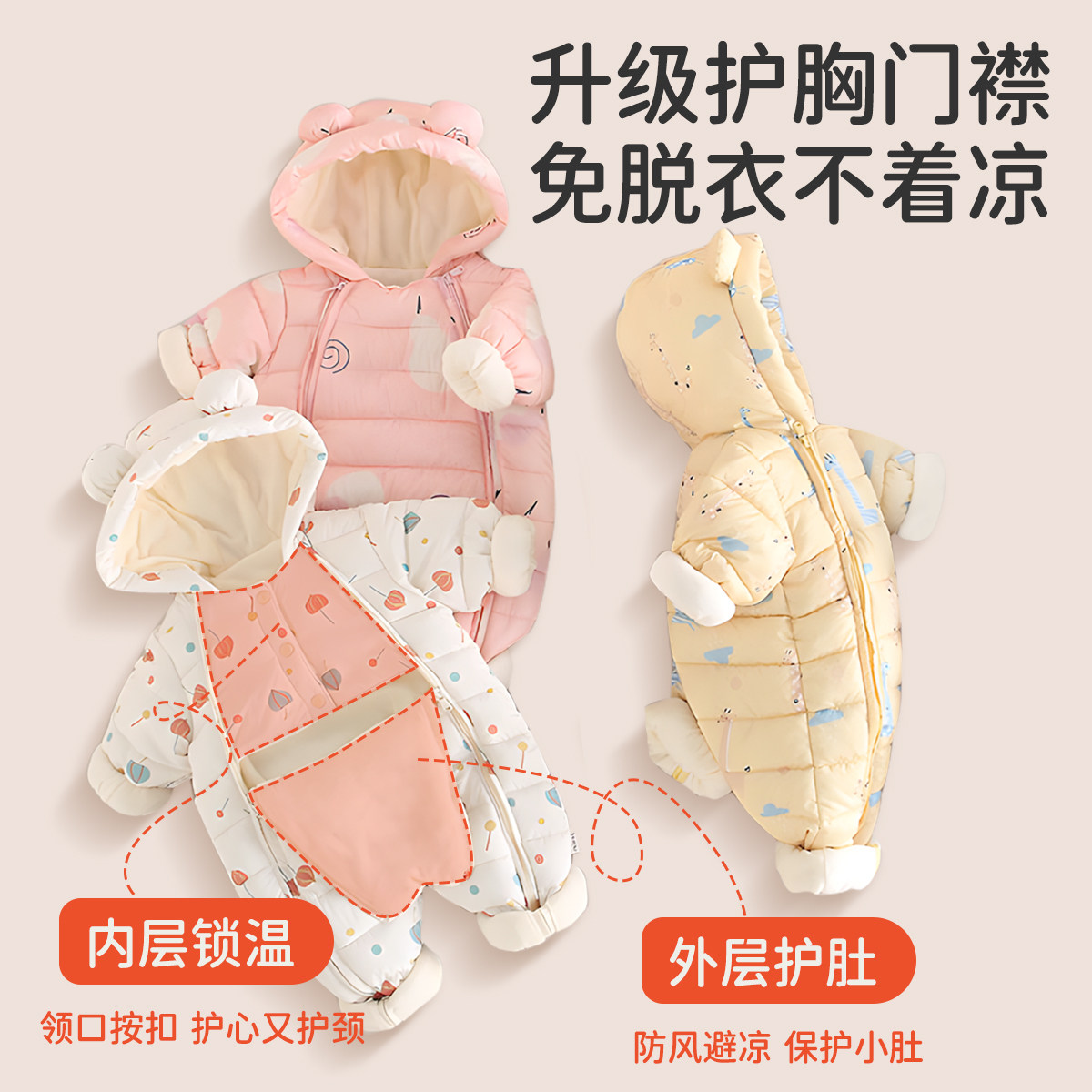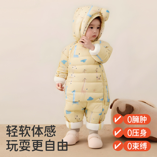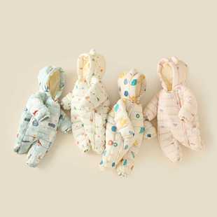 棉衣 加绒加厚宝宝连体衣新生儿衣服冬装 婧麒婴儿棉服2025新款 冬季