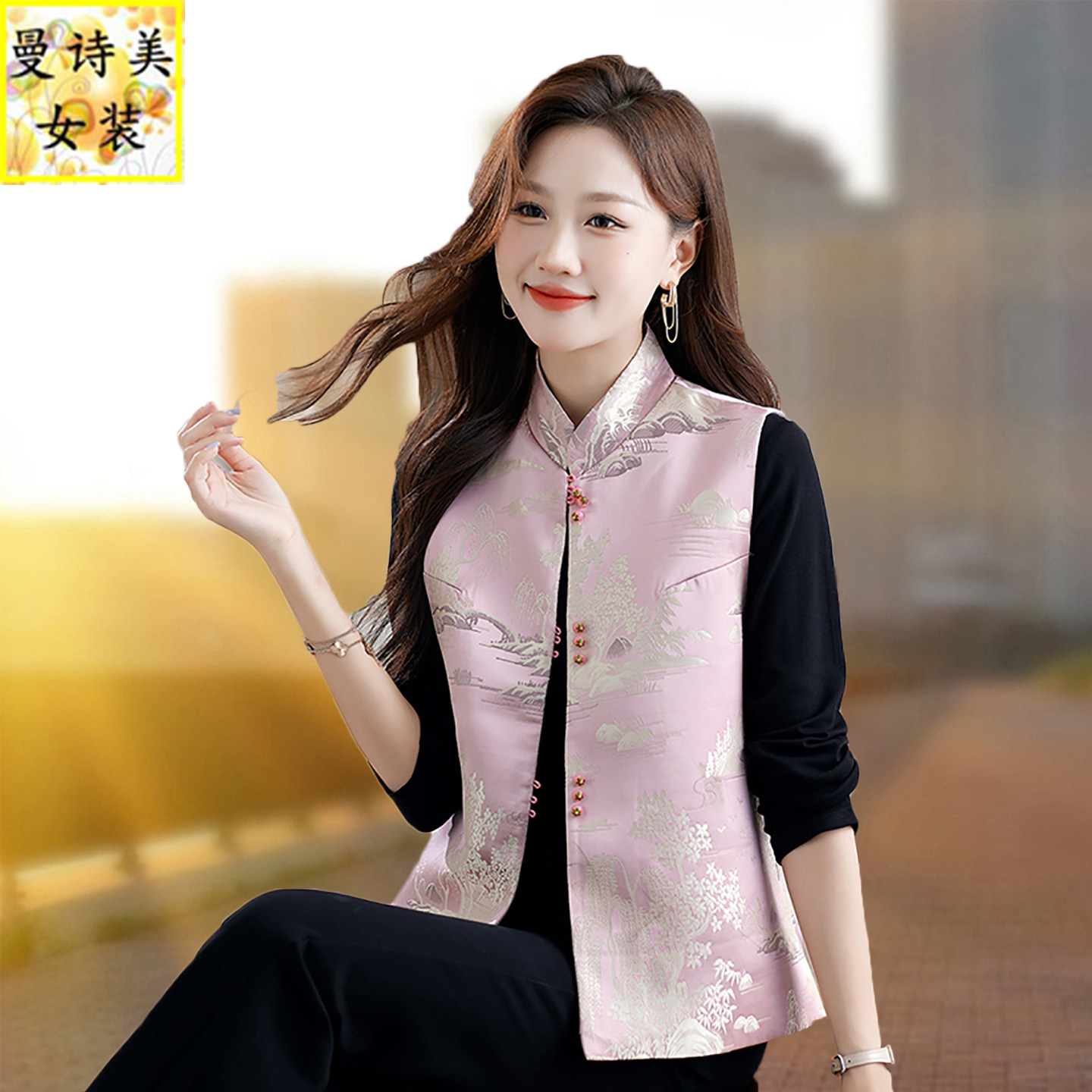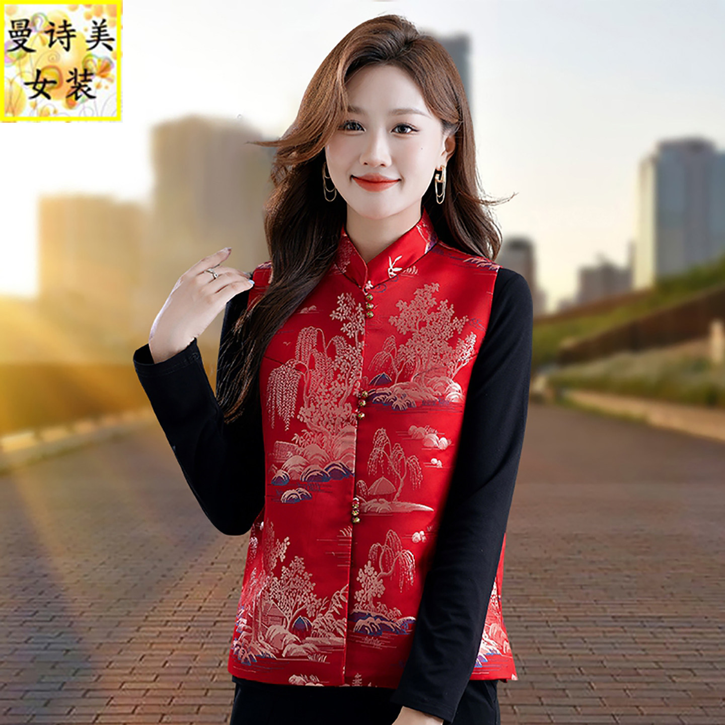 春秋季 红色新中式 爆款 马甲女士2025新款 妈妈国风马夹坎肩外穿 唐装