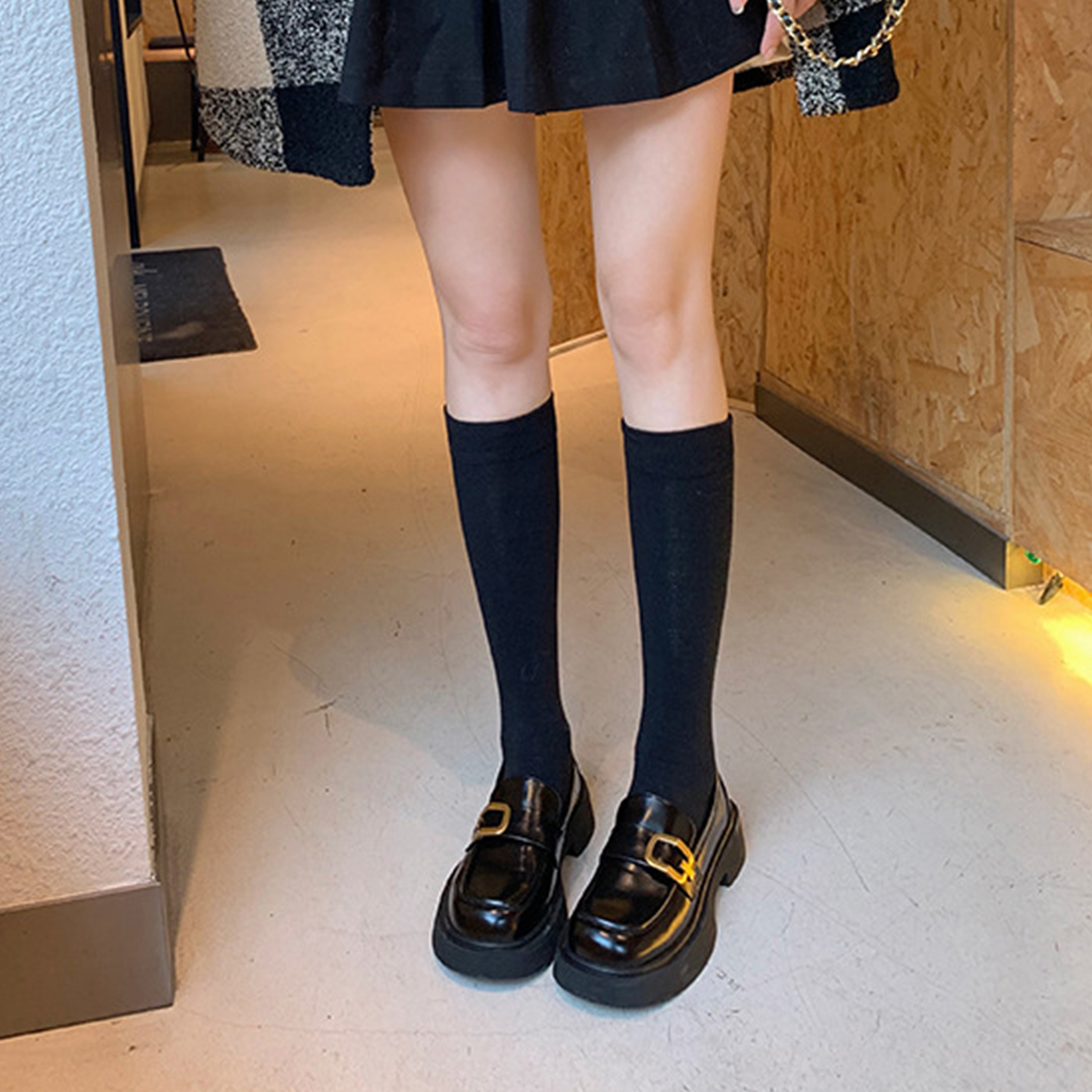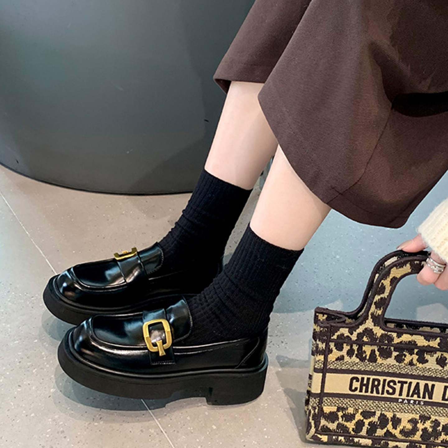 女厚底单鞋 真皮版 ~英伦风一字带方扣金属厚底粗跟圆头乐福小皮鞋
