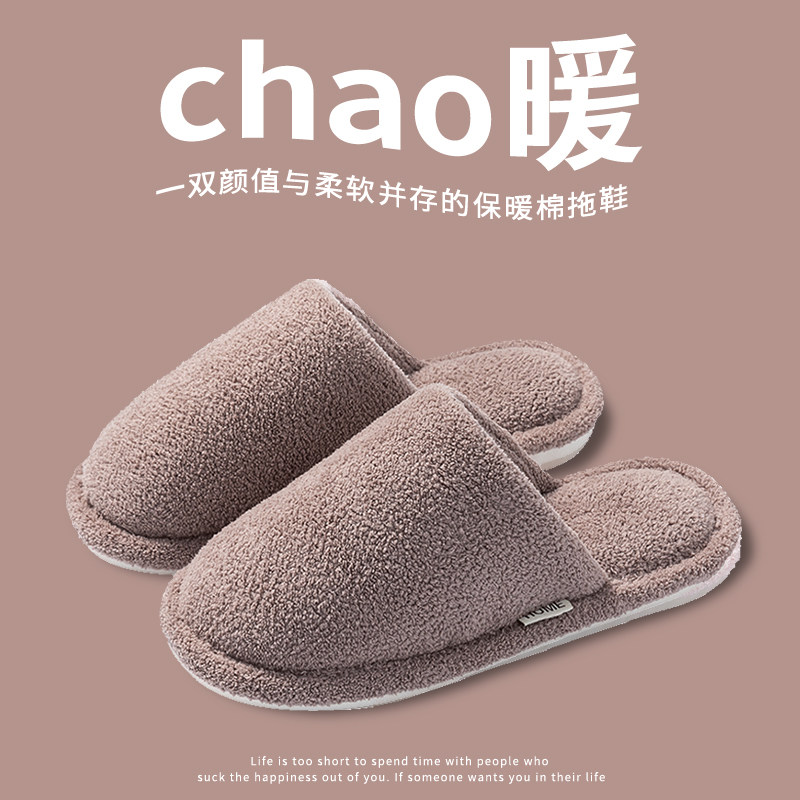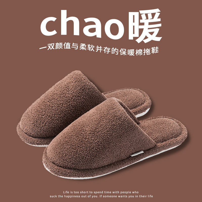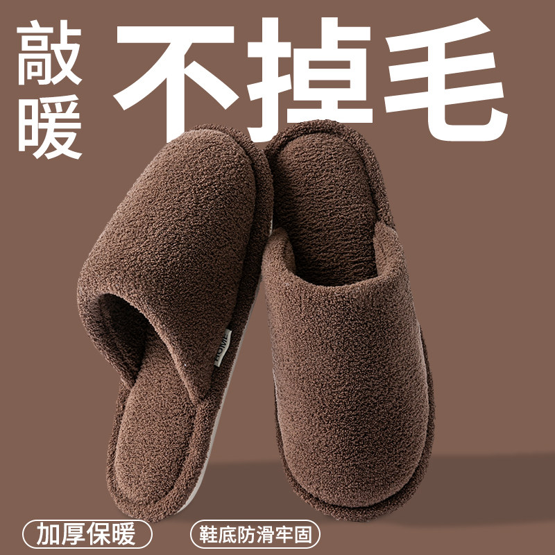 冬季 2025新款 秋冬家居室内防滑加绒加厚软底毛毛拖鞋 男士 女 棉拖鞋