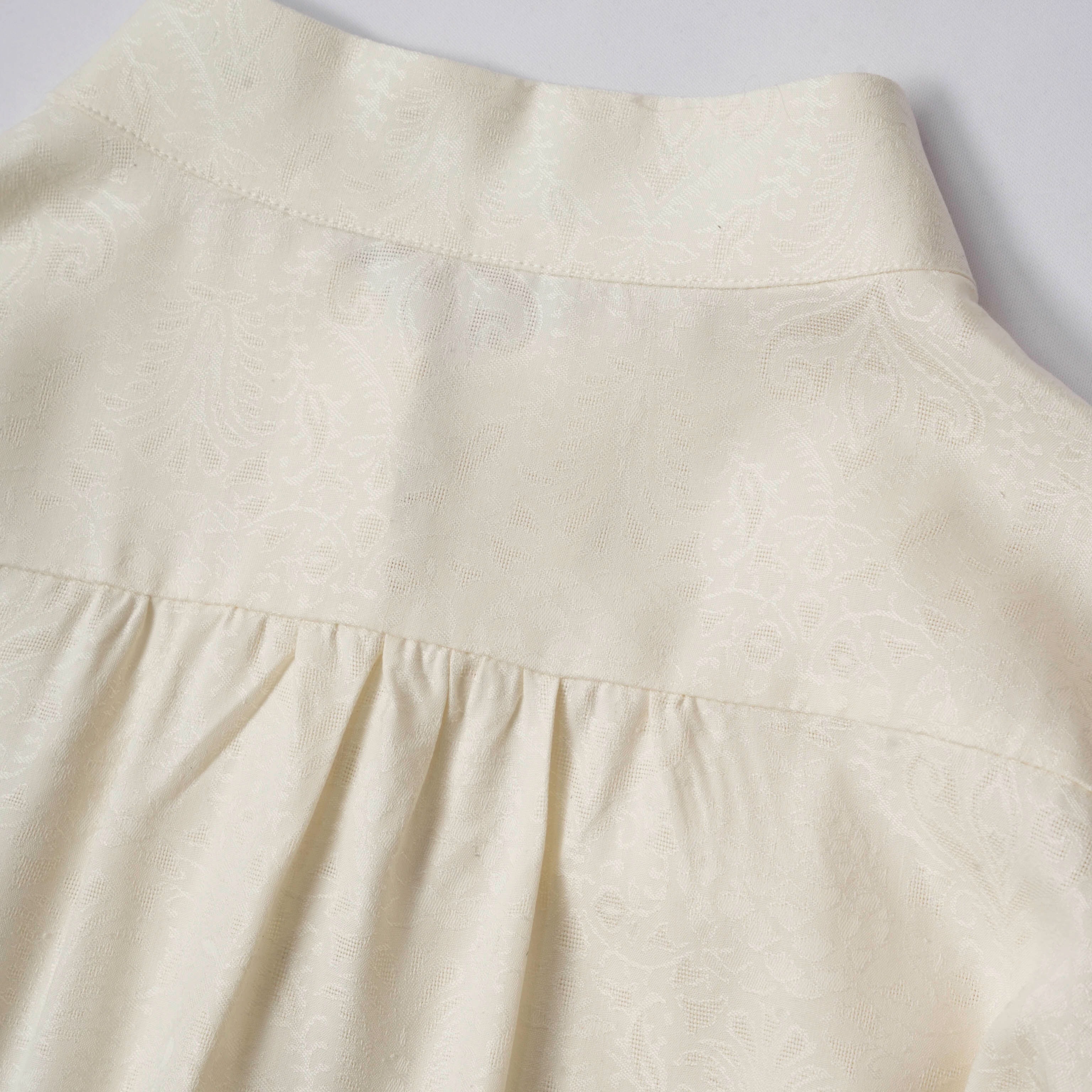 百搭气质上衣女 木耳领衬衫 仙草宝相提花缎真丝桑蚕丝白色法式 长袖