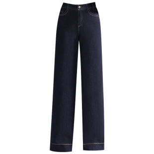 加厚保暖阔腿裤 可拆卸内胆蚕丝棉裤 丹宁蓝直筒牛仔棉裤 新款 女冬季