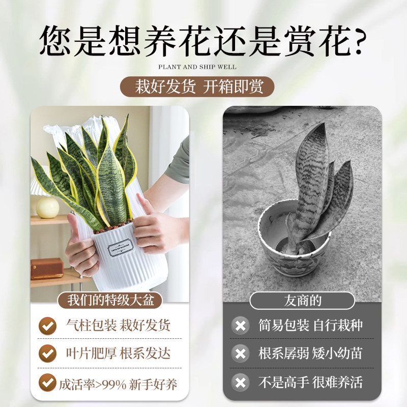 金边虎皮兰绿植除室内甲醛桌面植物花卉净化空气好养虎尾兰盆栽