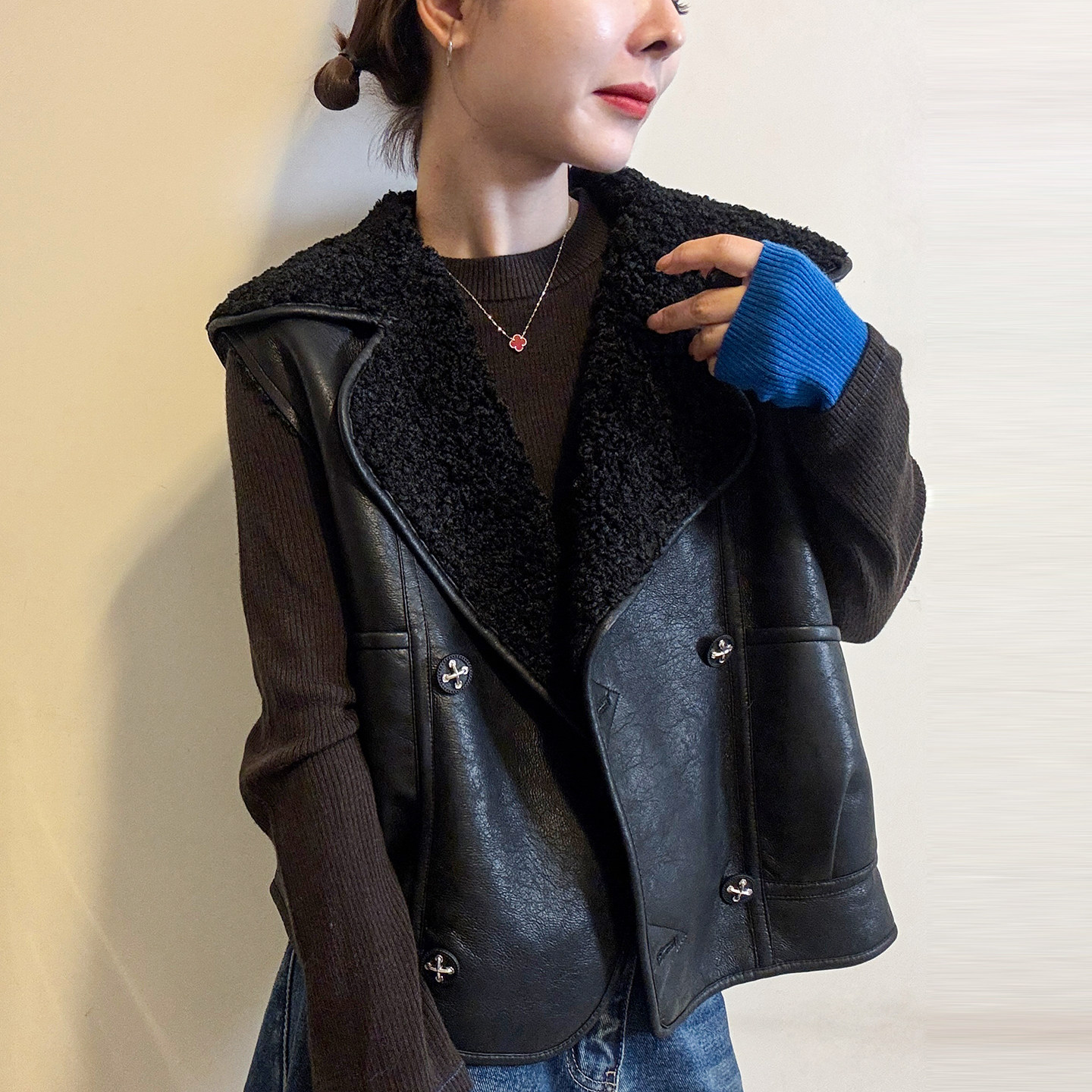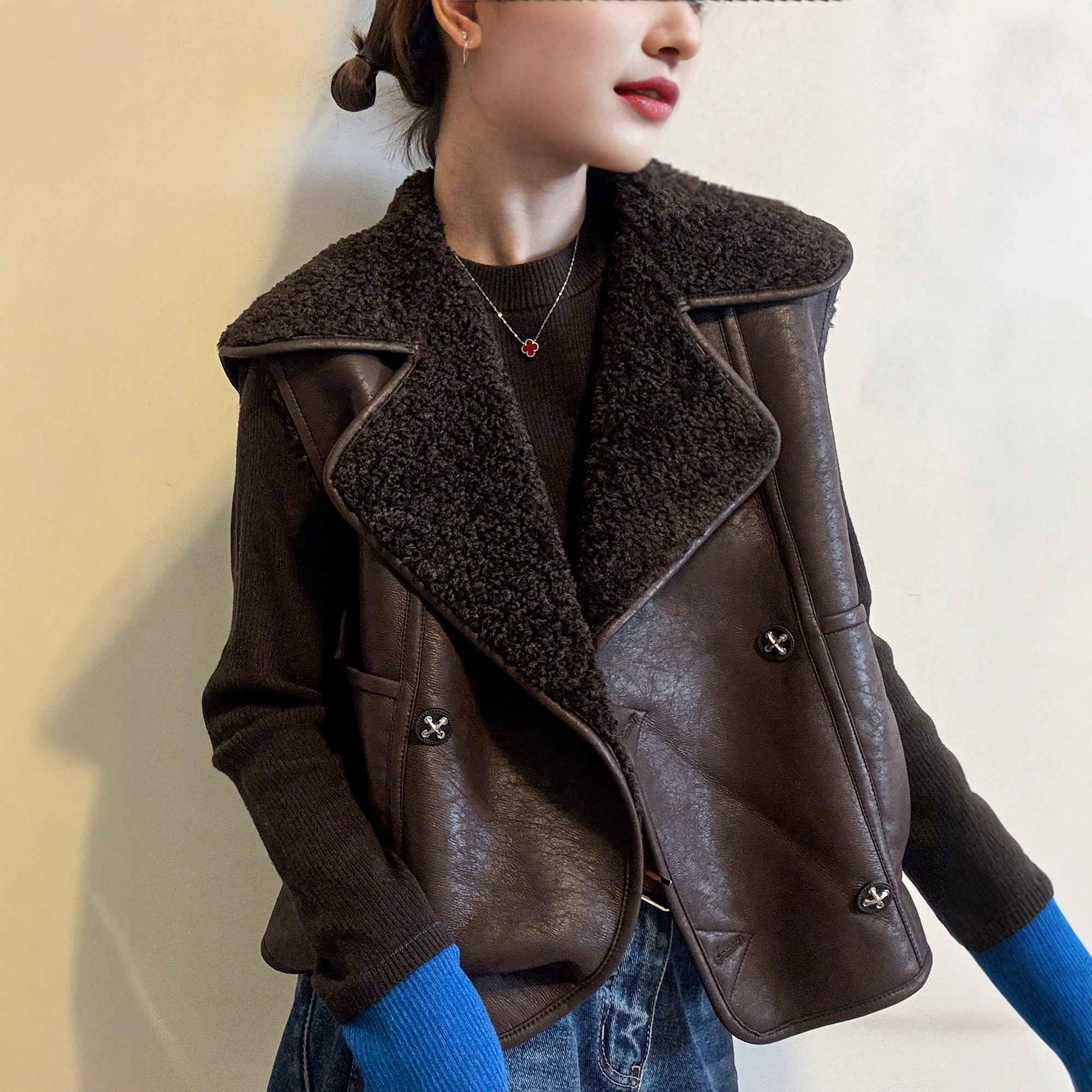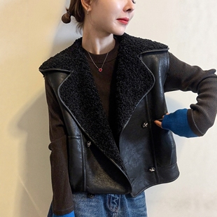 潮 欧货女装 颗粒绒羊羔毛皮毛一体马甲短外套女欧洲站2025冬装 新款