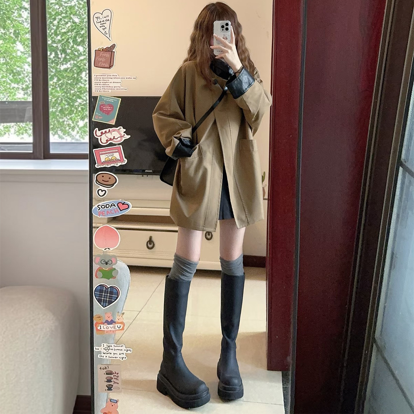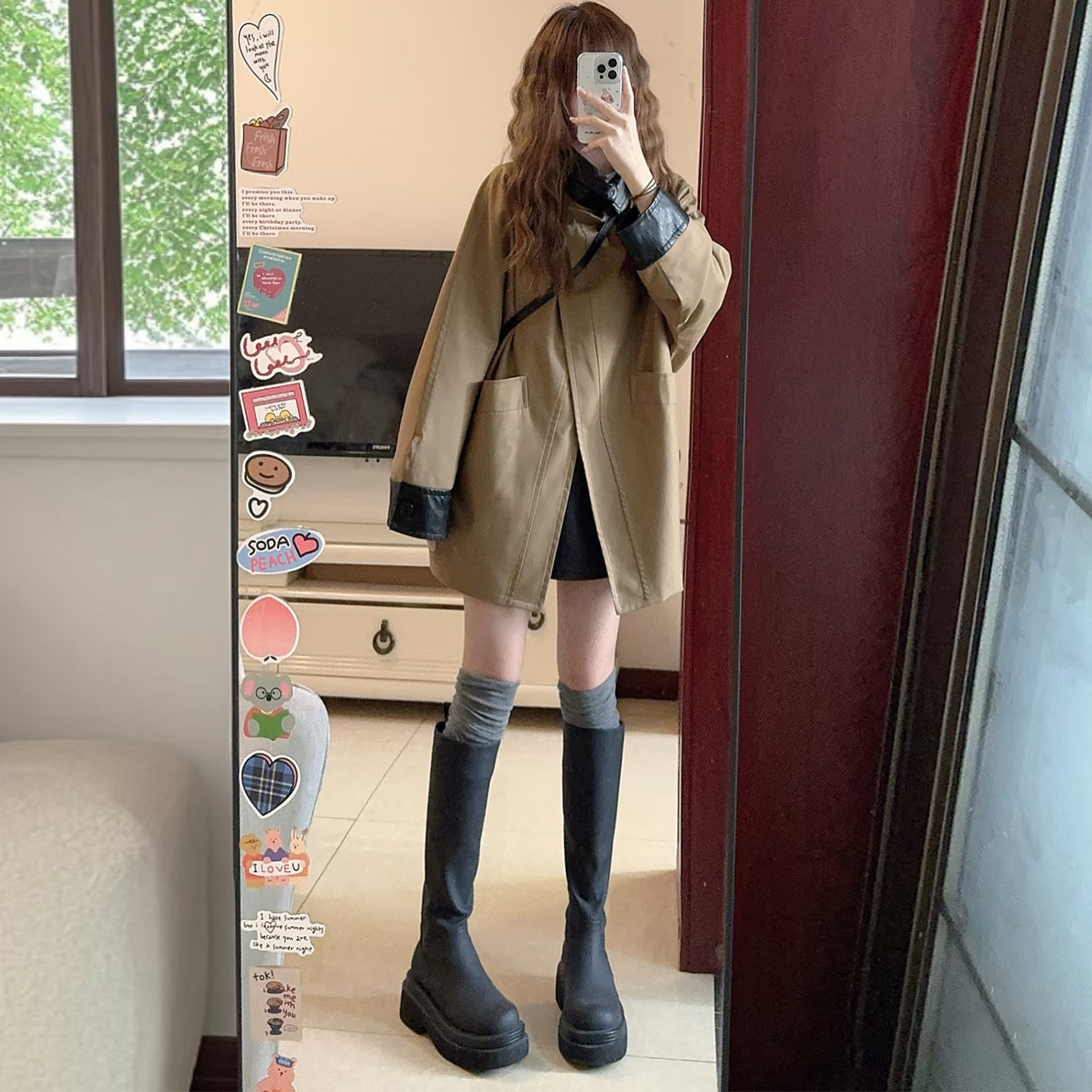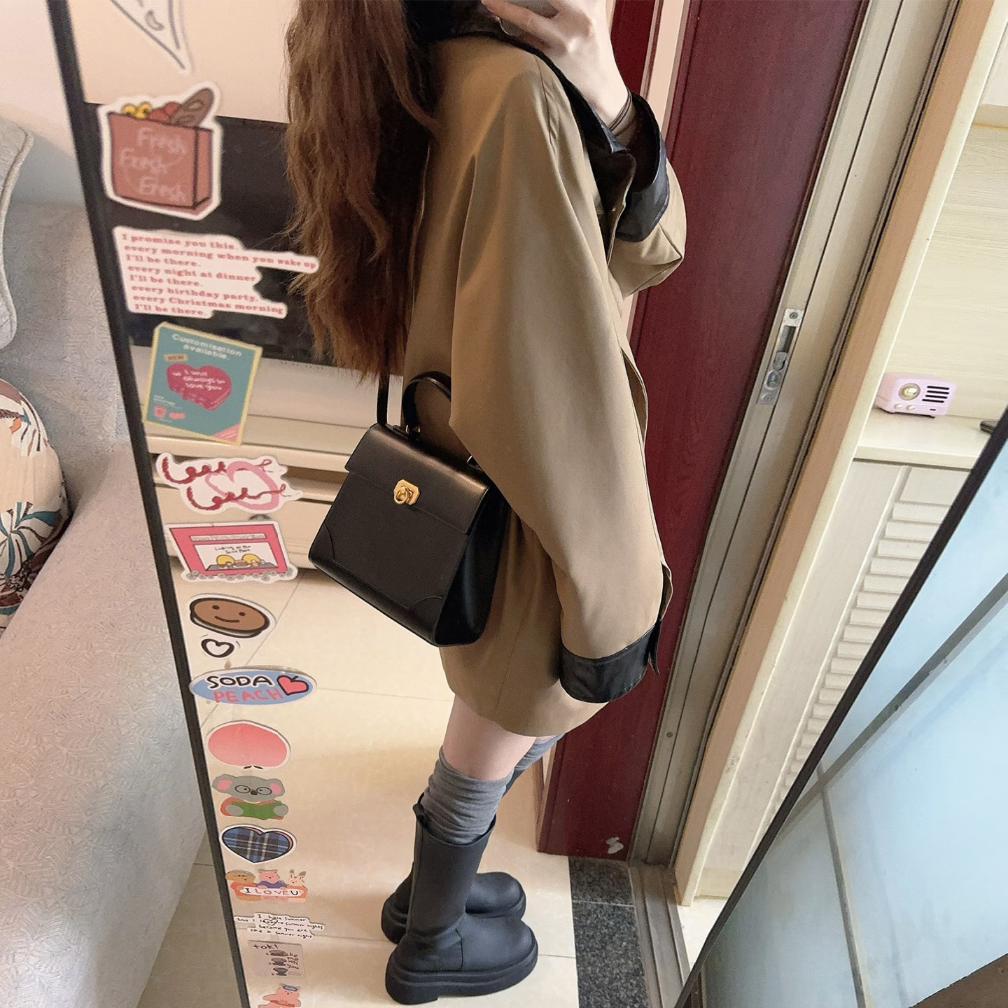 韩系风衣外套女巴恩风撞色翻领中长款 高级感巨好看小个子流行大衣