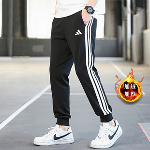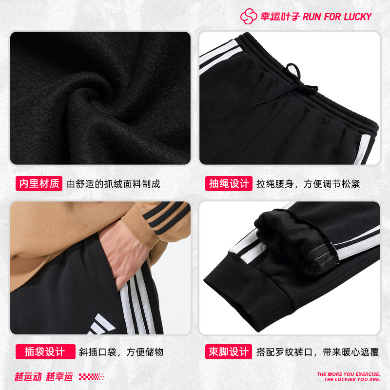 针织保暖束脚裤 阿迪达斯加绒长裤 跑步运动裤 2025新款 子JD1861 男裤