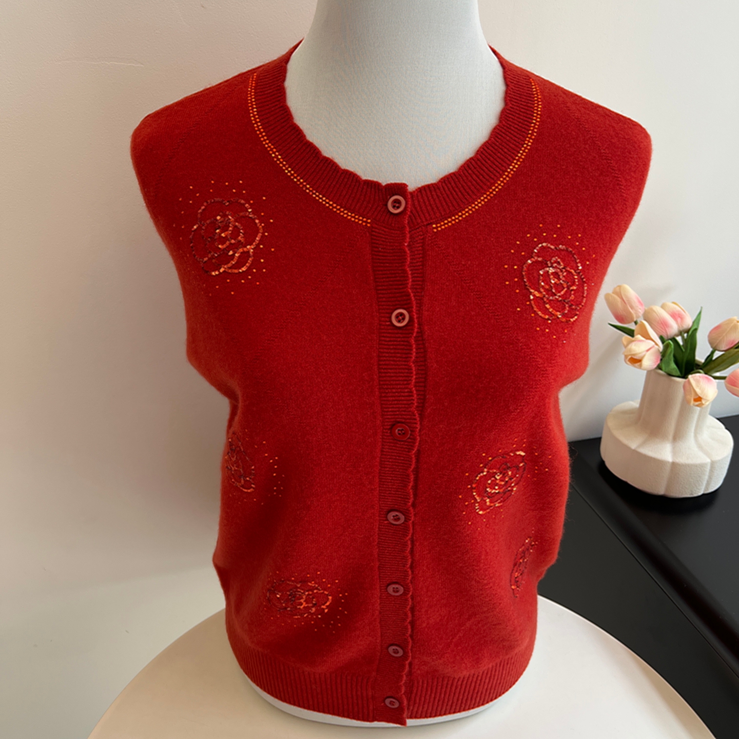 奶奶上衣中老年妈妈毛衣外套女 秋冬新款 羊毛衫 100纯羊毛针织开衫