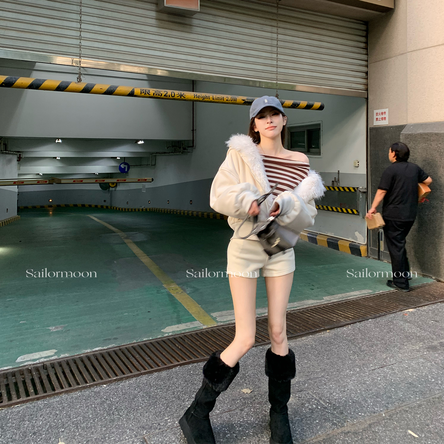 束脚休闲阔腿小个子卫裤 加绒棉裤 女秋冬2025新款 灰色羊羔绒运动裤