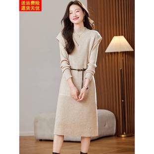 时尚 收腰叠穿毛衣裙套裙女 贵夫人秋冬针织马甲连衣裙小个子中长款