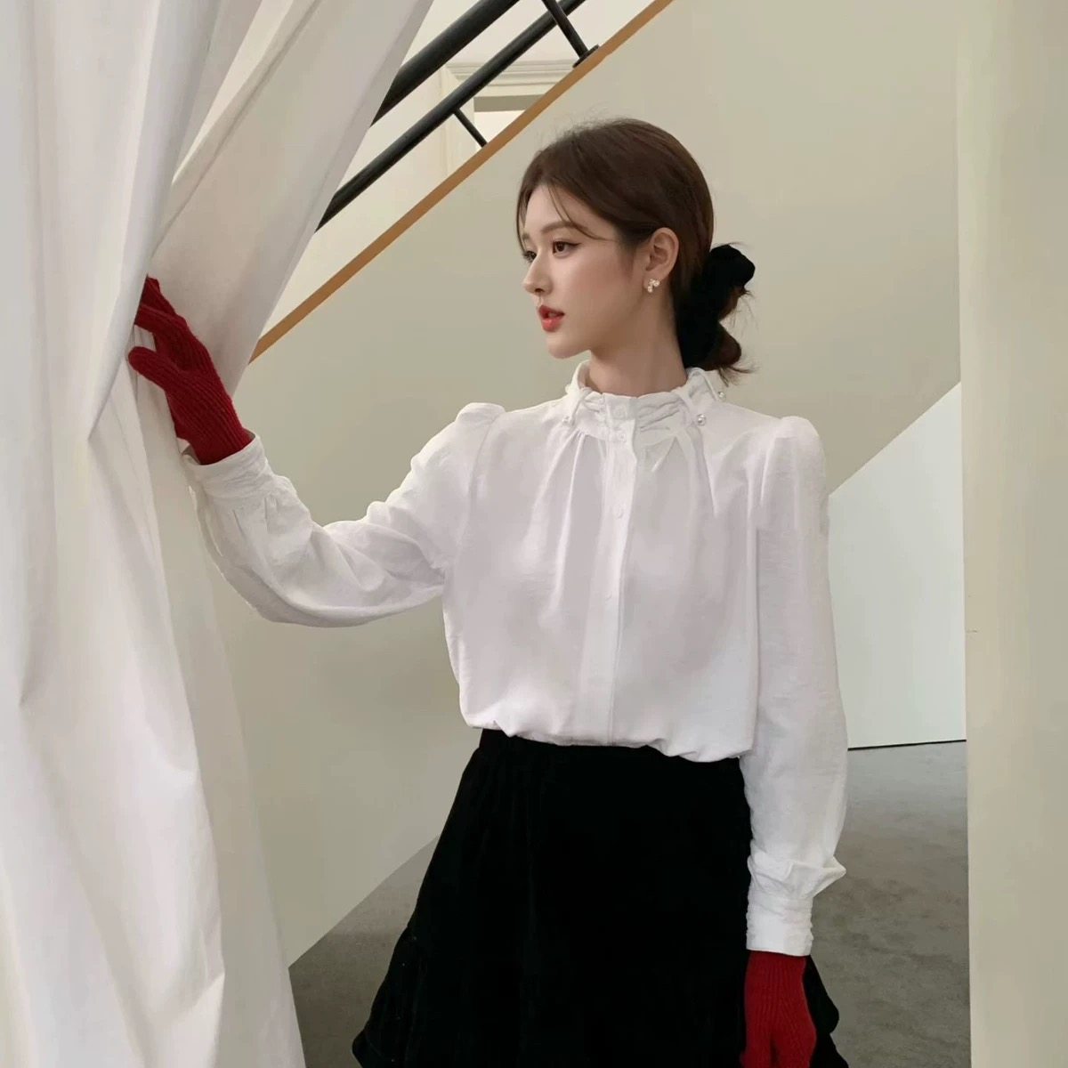 绒面直筒衬衫 舒服炸了 保暖 山羊绒=柔软 打底上衣女秋冬 真丝