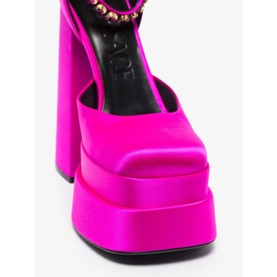 女鞋 粗跟浅口甜美蝴蝶结单鞋 高跟粉色方头皮鞋 新款