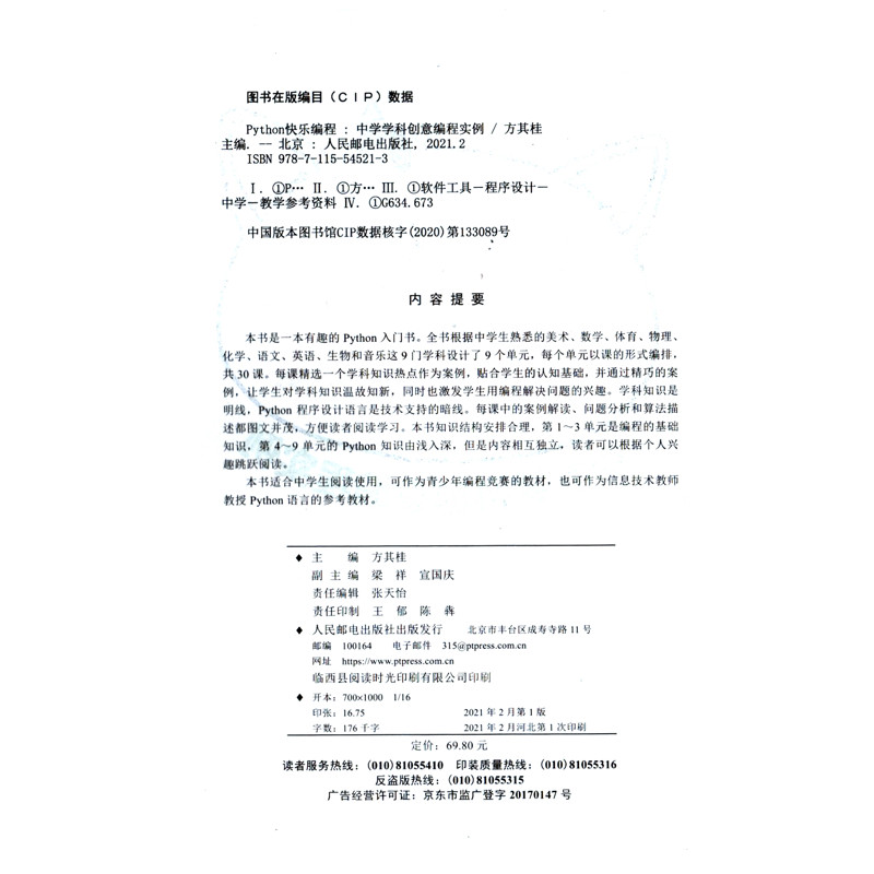 中学学科创意编程实例方其桂网站设计 社新华书店正版 网页设计语言 人民邮电出版 新 Python快乐编程