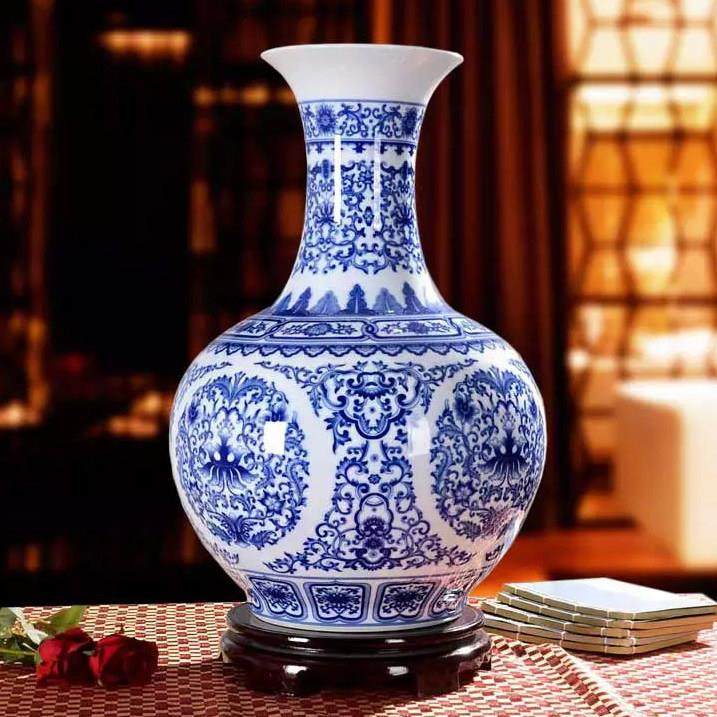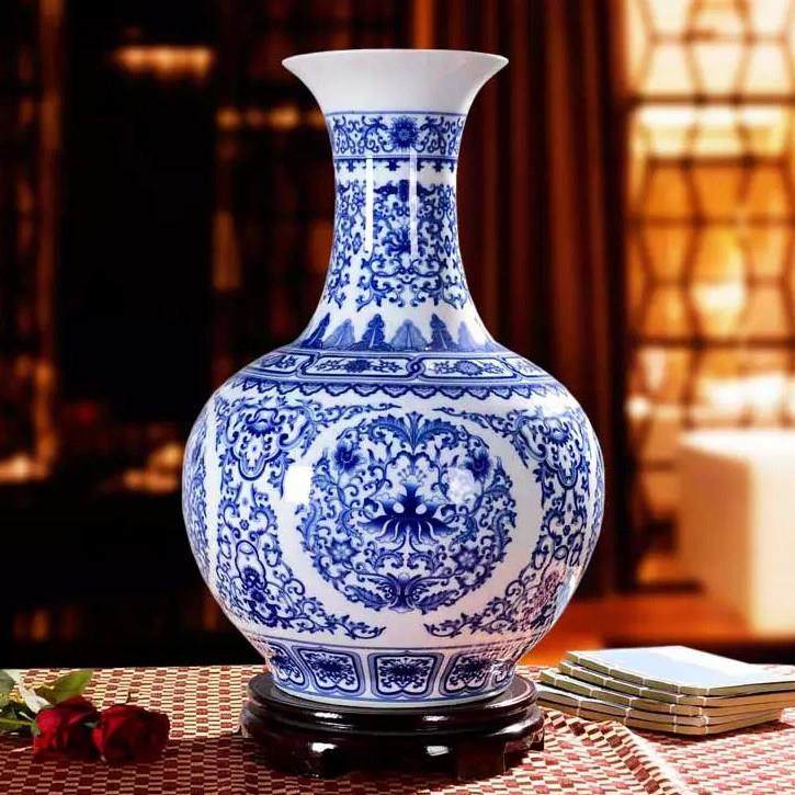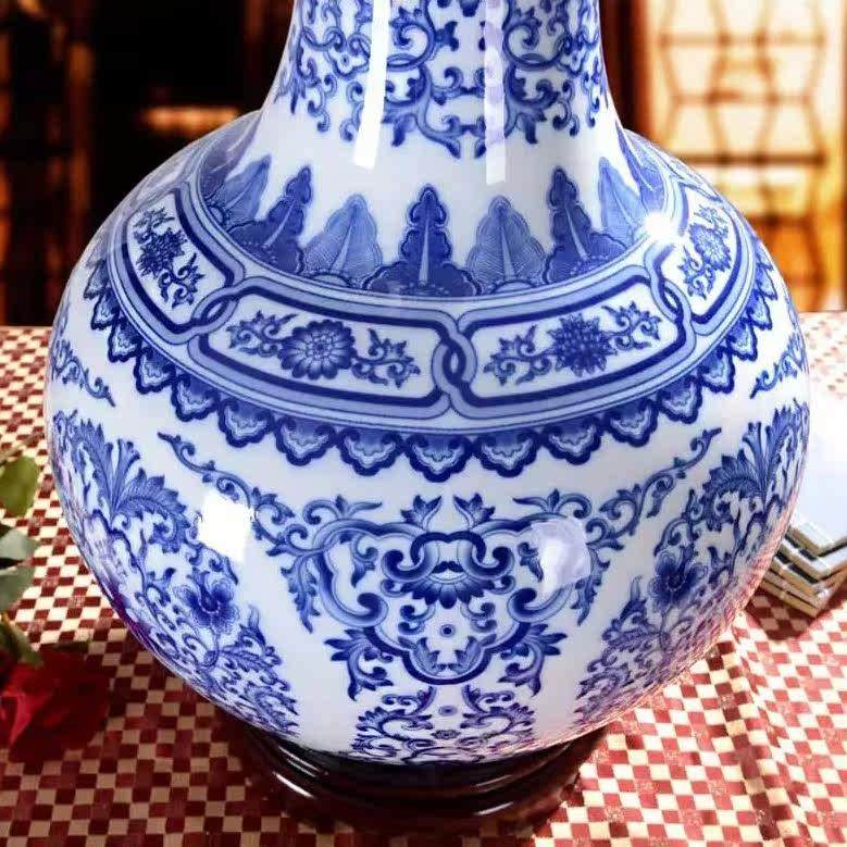家居客厅摆设 现代时尚 景德镇陶瓷器 仿古青花瓷釉中彩落地大花瓶