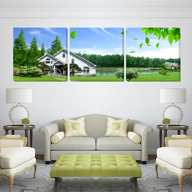 客厅装 饰画三联画壁画沙发背景墙挂画卧室墙画无框画田园风光墙画