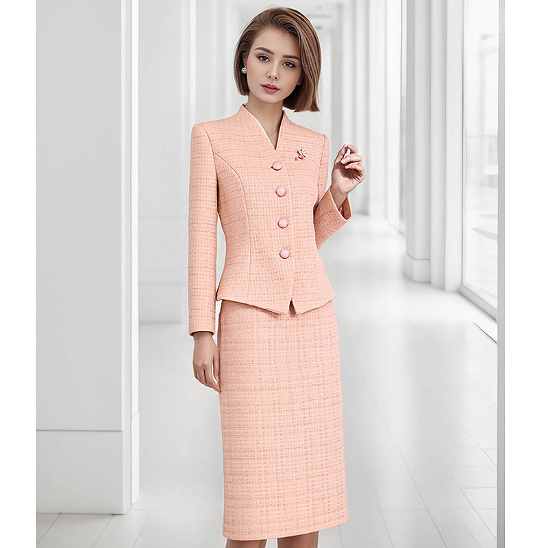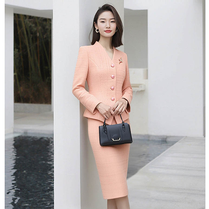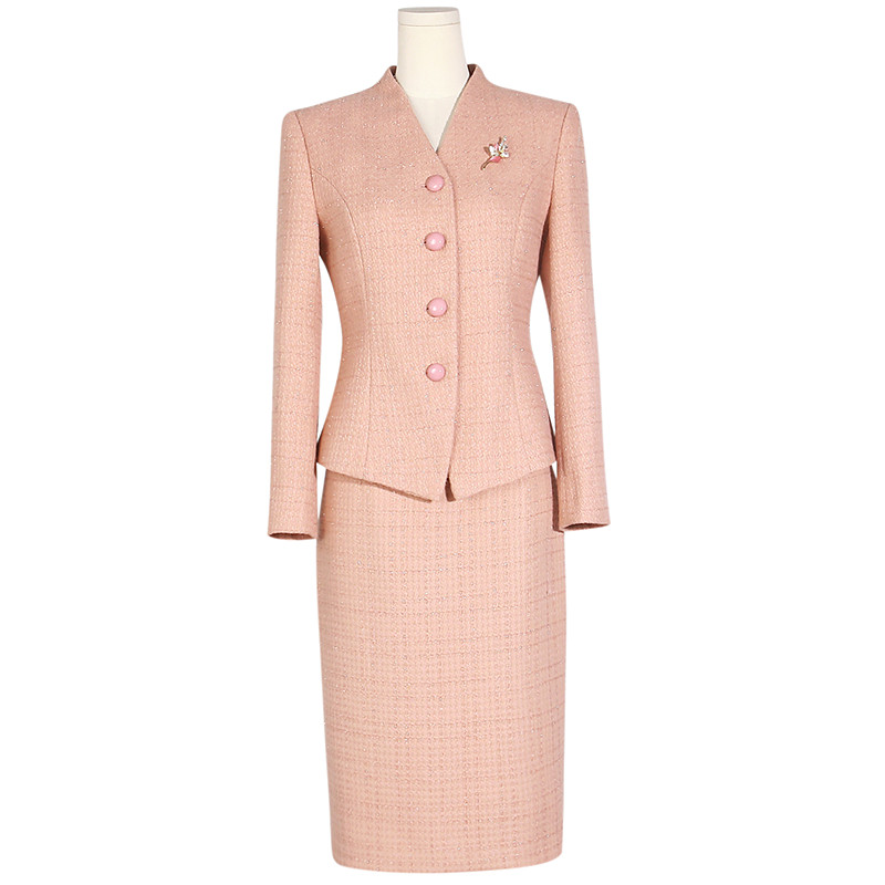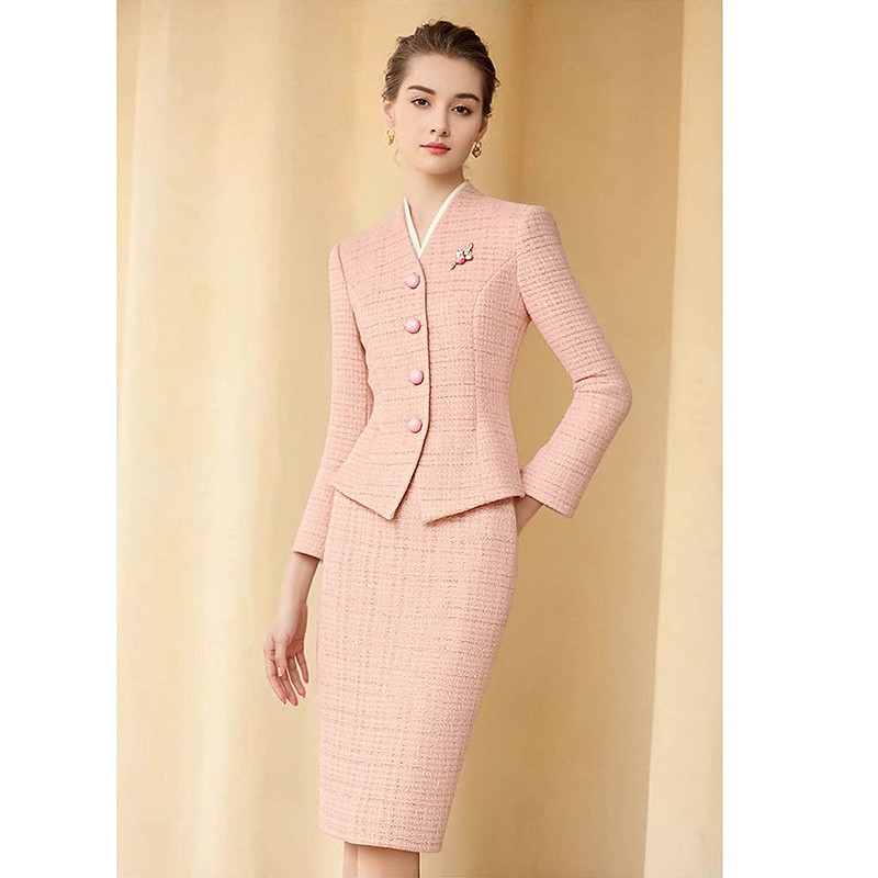 气质女神范ol风套裙高端面试新款 璐丝百丽粉色职业套装 女春秋时尚