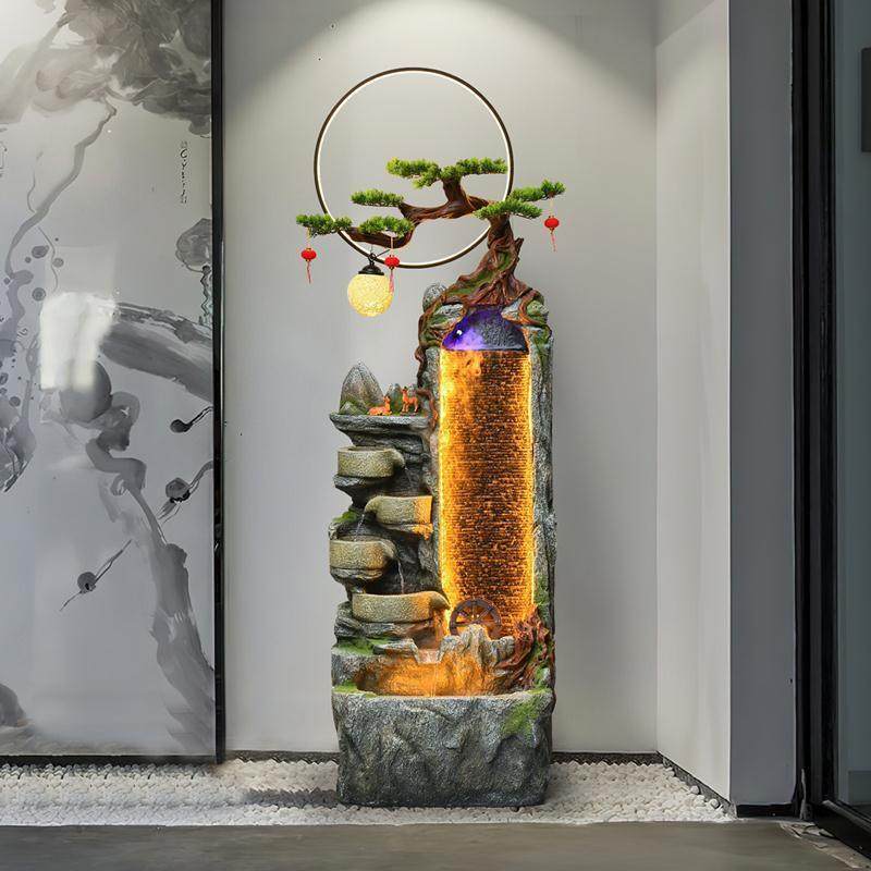 流水摆件家用倒流香中式 饰 喷泉客厅加湿器办公室乔迁新居开业礼装