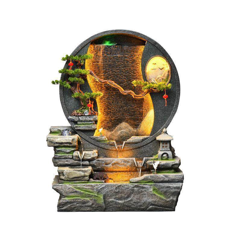 创意陶瓷流水摆件循环水招财客厅小型办公桌面装 饰造景风水轮礼物