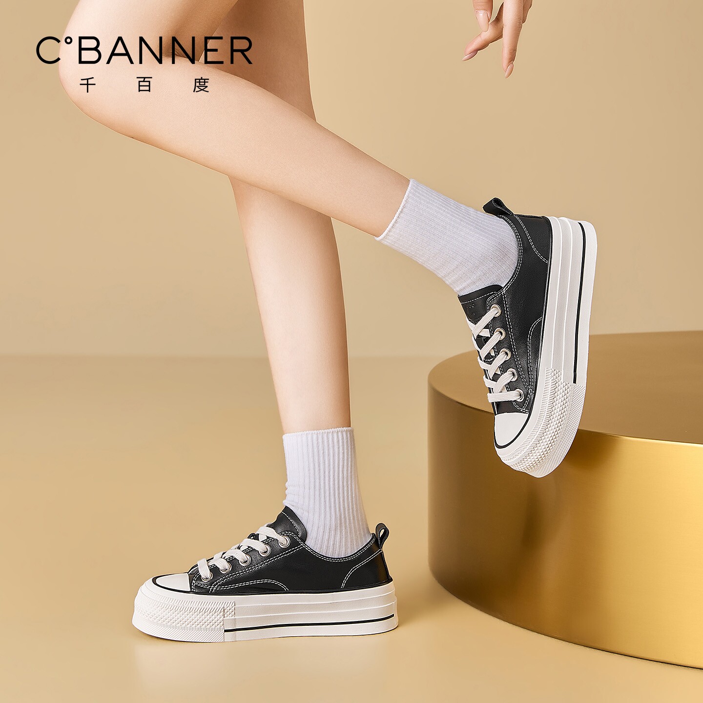 女2026春季 极简板鞋 新款 厚底运动休闲鞋 时尚 千百度百搭皮面帆布鞋