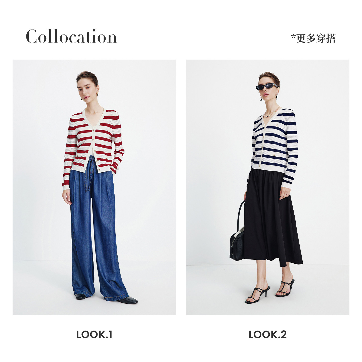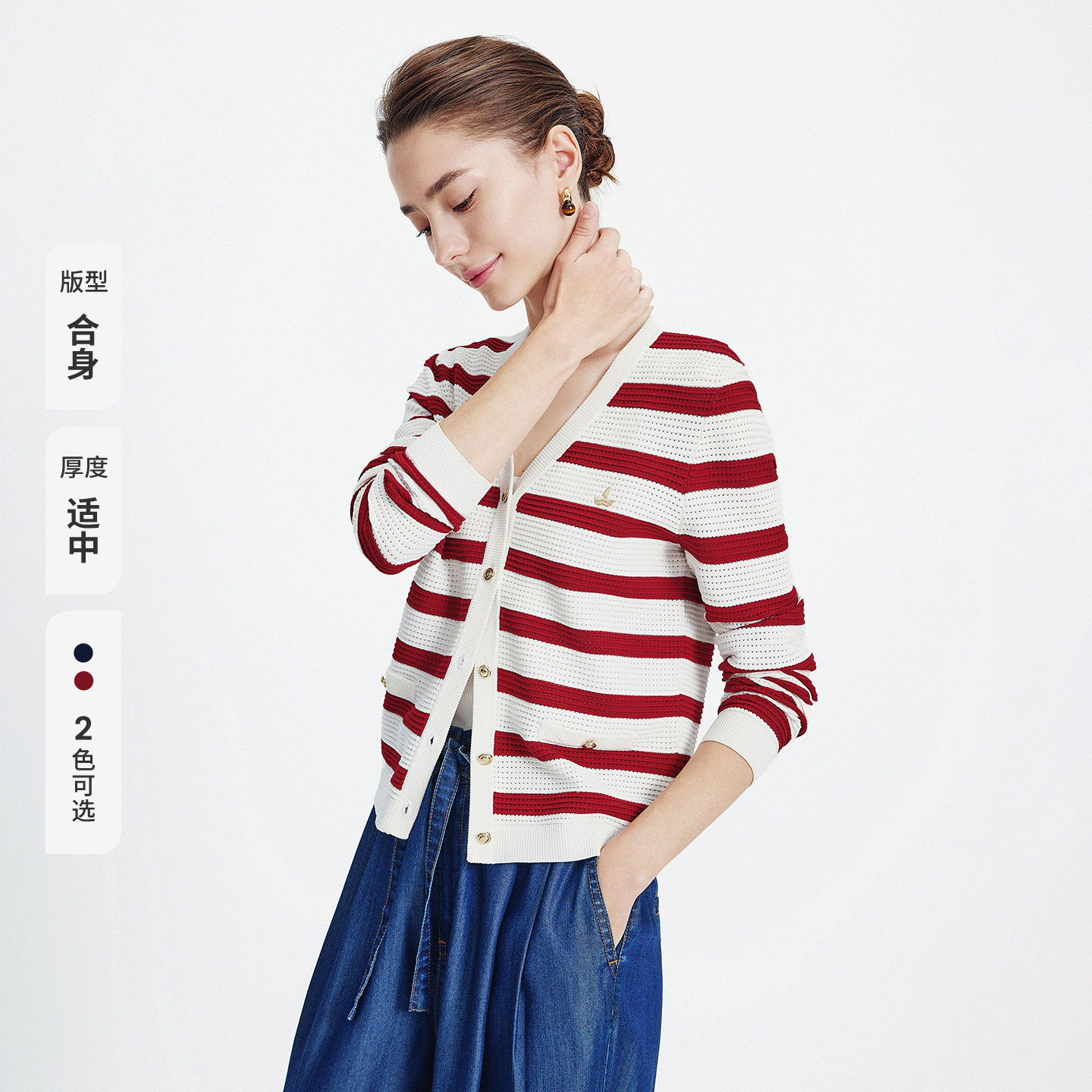 Navigare意大利小帆船镂空学院风微弹2026春季 外套 女针织红色开衫