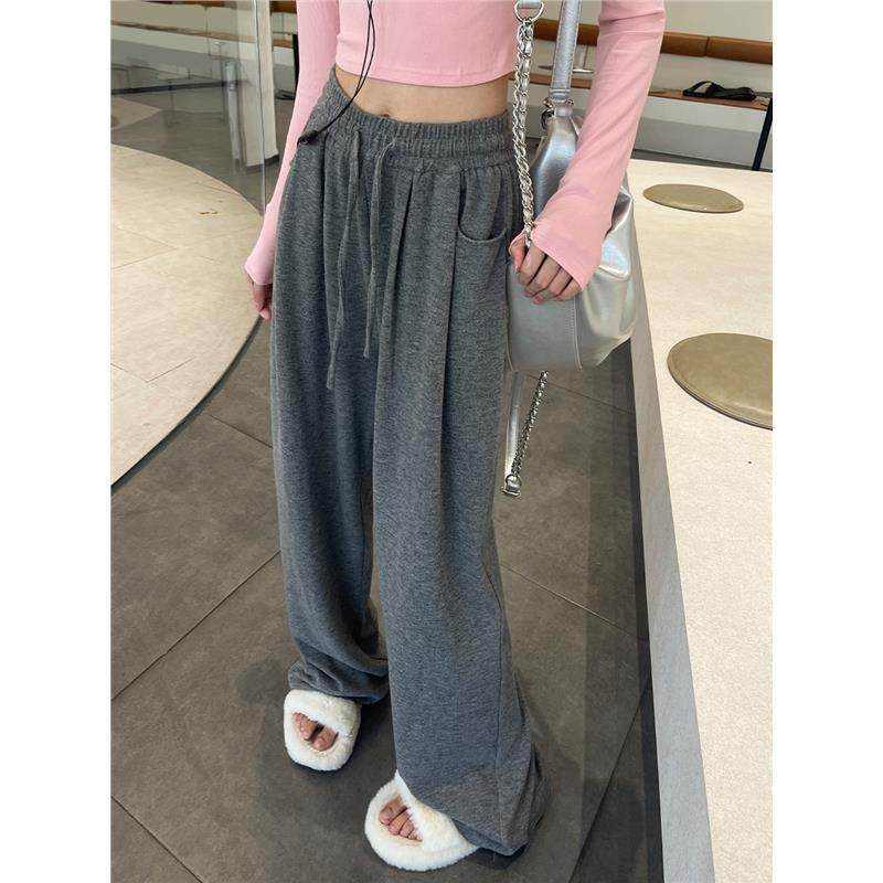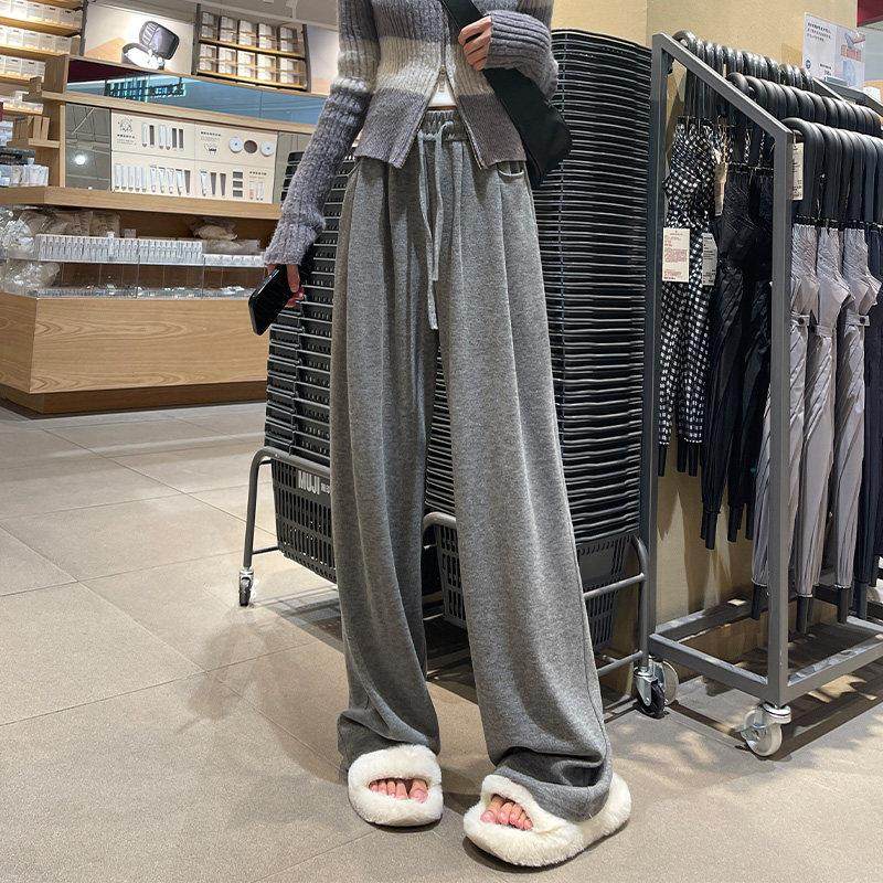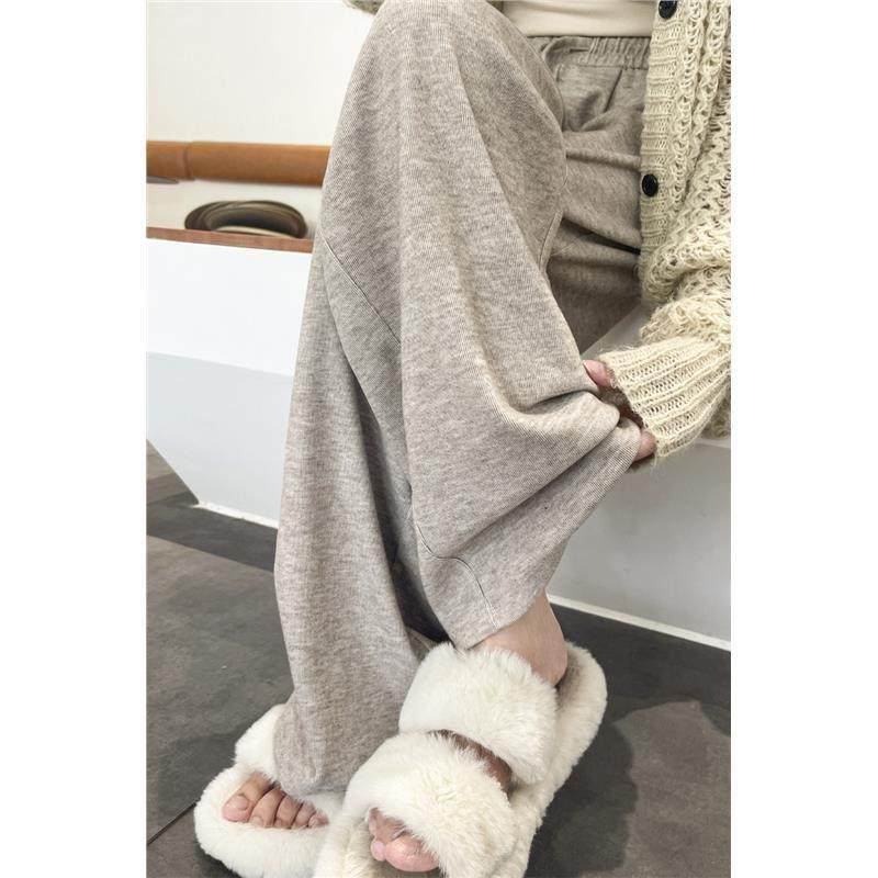 加绒休闲运动针织糯米裤 女2024秋冬新款 潮 灰色软糯垂感阔腿裤 时尚