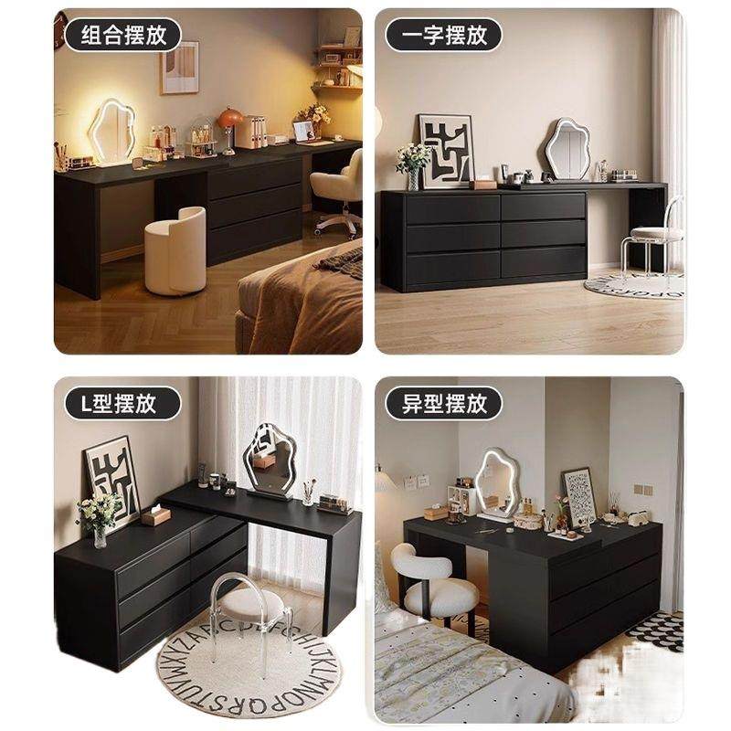 色室梳妆台现AIT代简约卧书体桌斗柜一复古风黑轻奢小户型意式 化