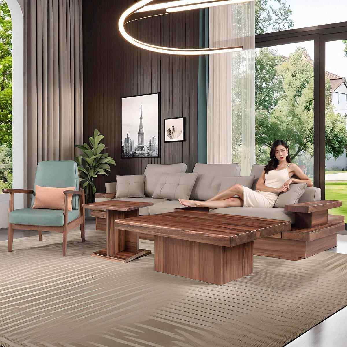 约小户型家大用客厅别墅 发组合现代家简式 朴房新中实木沙LS 206