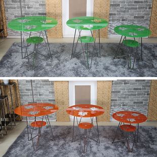 时尚 洽谈桌椅圆形钢化玻璃茶几边角几阳台咖啡厅休闲接待桌椅家用